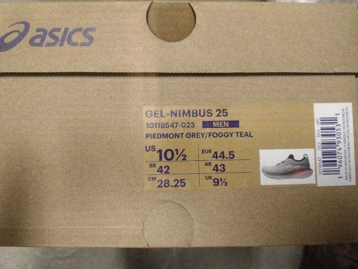 Brand New Asics Gel Nimbus 25 Men US 10.5/ EUR 44.5 in Piedmont Grey/ Foggy Teal colour.