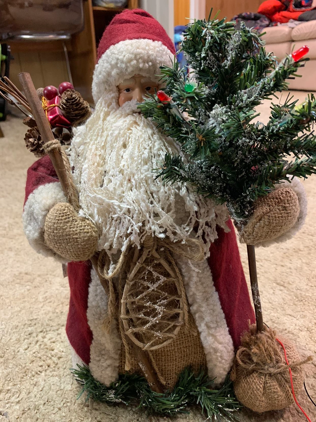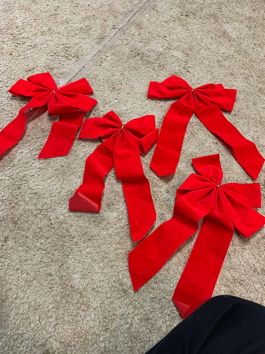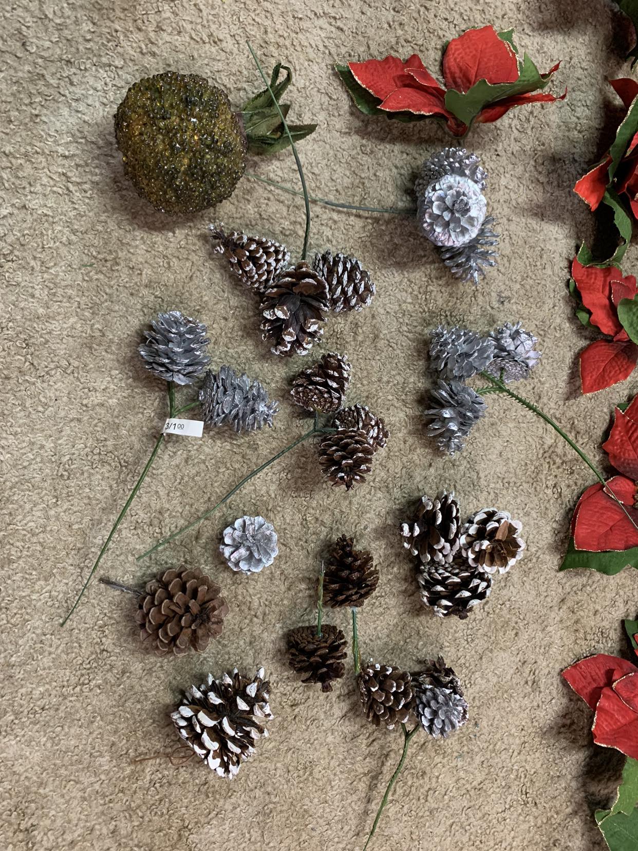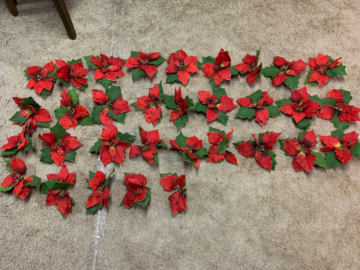 Christmas tree decorations ornaments Lots of things included together Santa clause statue with lights about 30cm tall, Poinsettia flowers high quality about 30 pieces 5-6” each, silver bows, red bows, pine cones, silver big ornaments about 6-7” each, silver small ornaments about 2-3” each, tree topper star about 8-10” big, one string light as well All for $30 obo Pet free smoke free home Pickup near Scarborough town centre