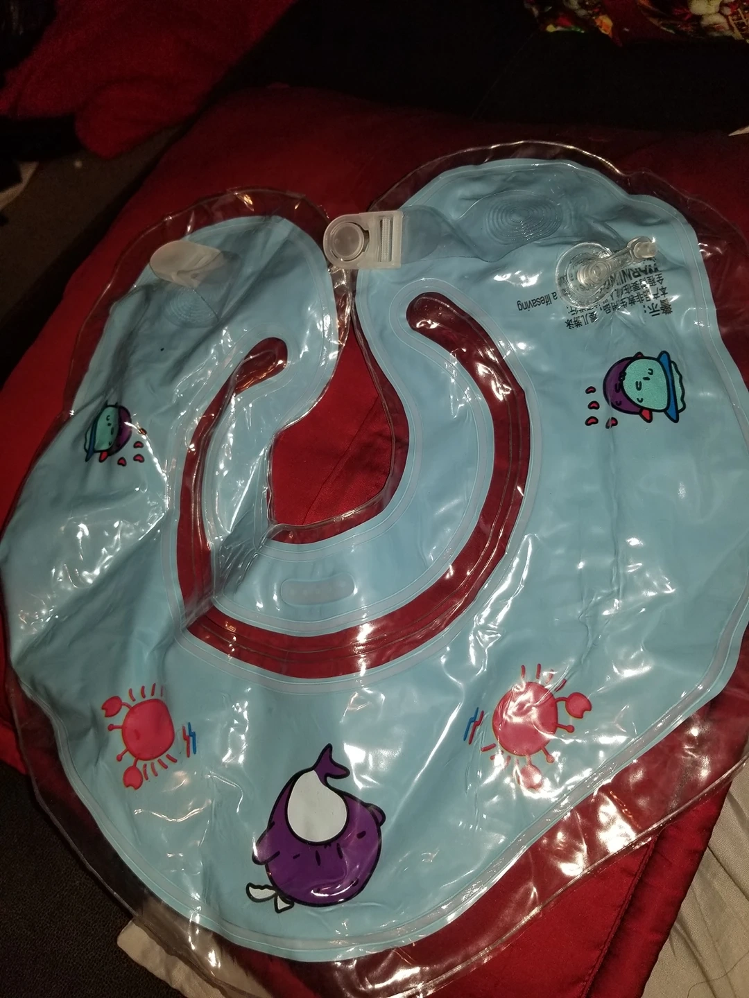 This baby floaty will allow your baby newborn and up to be able to swim in the tub this device safely attaches around the baby's neck and allows them to swim (please dont ever leave child unattended) I bought two originally for my granddaughters house and mine and I no longer need the one I have.