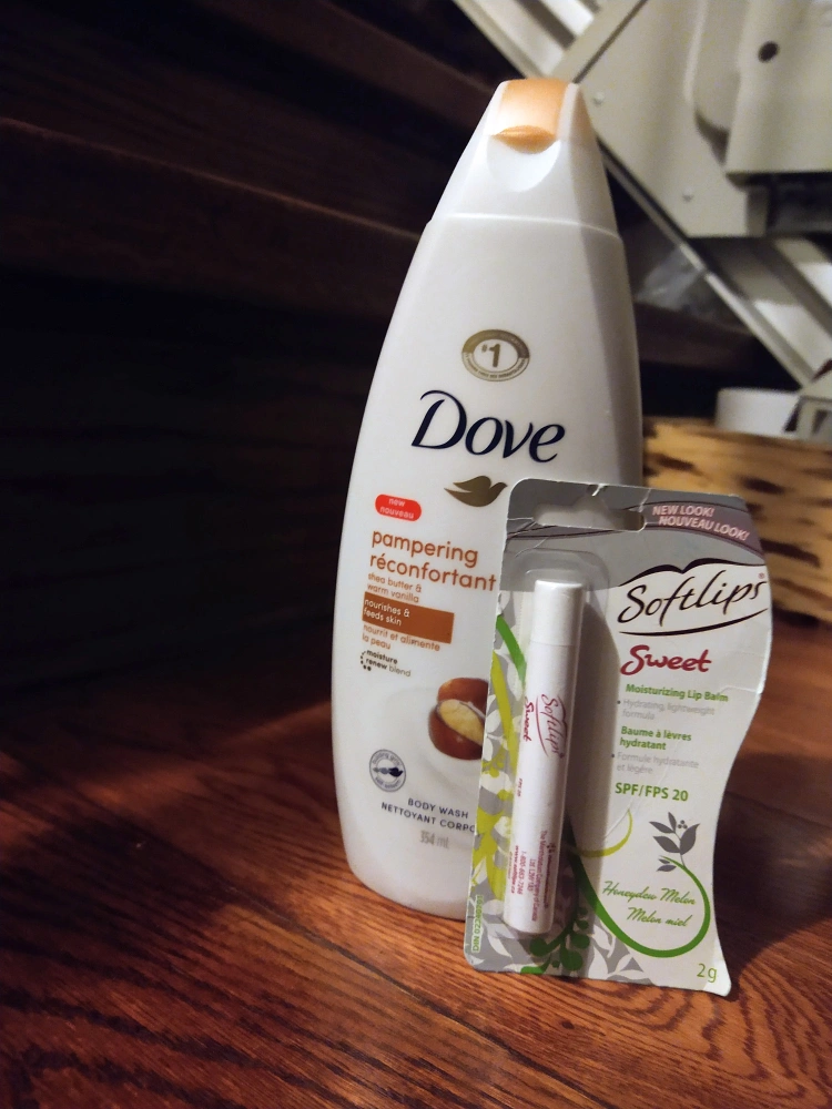 I am offering a new Dove body wash, along with an SPF 20 Lip balm, by Soft Lips.