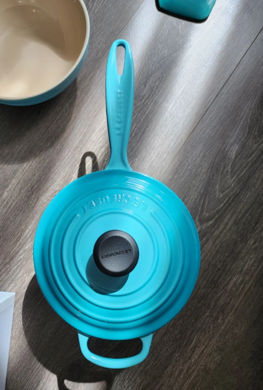 Le Creuset 1.75 Qt Signature Saucepan Caribbean & Spatula