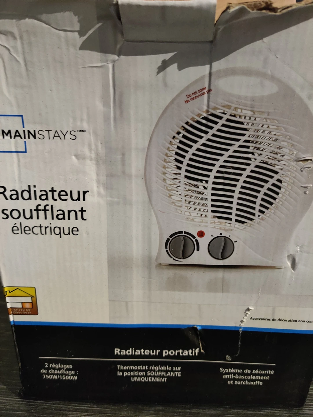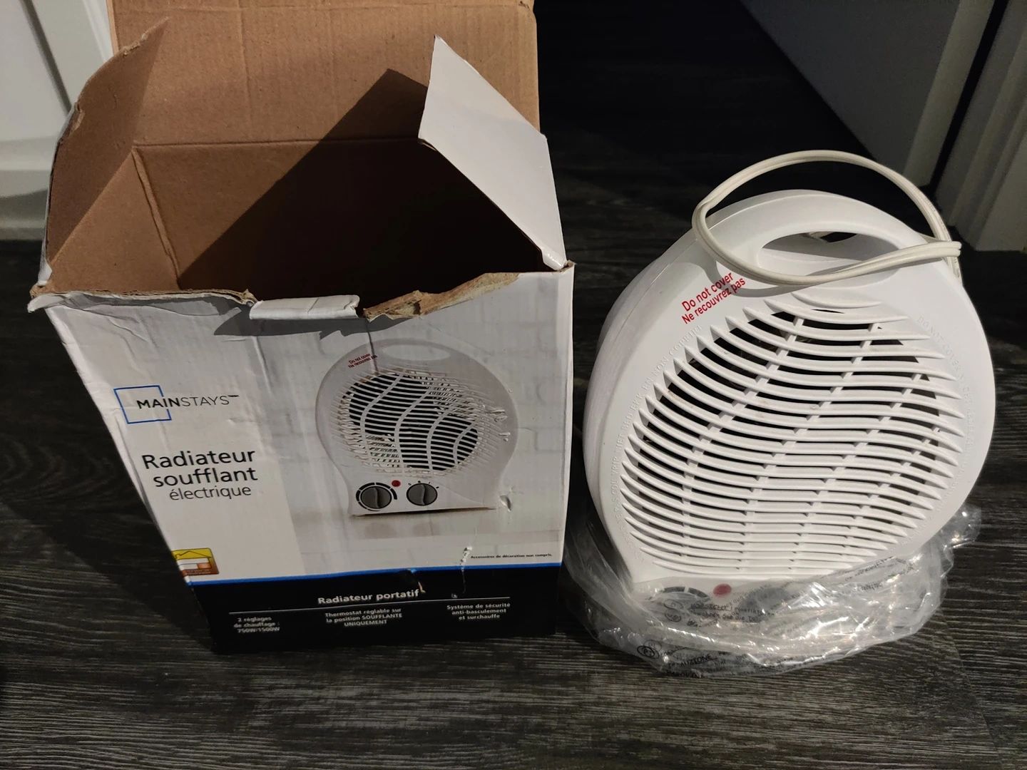 Mainstays White Portable Fan Heater w/Thermostat (used)
