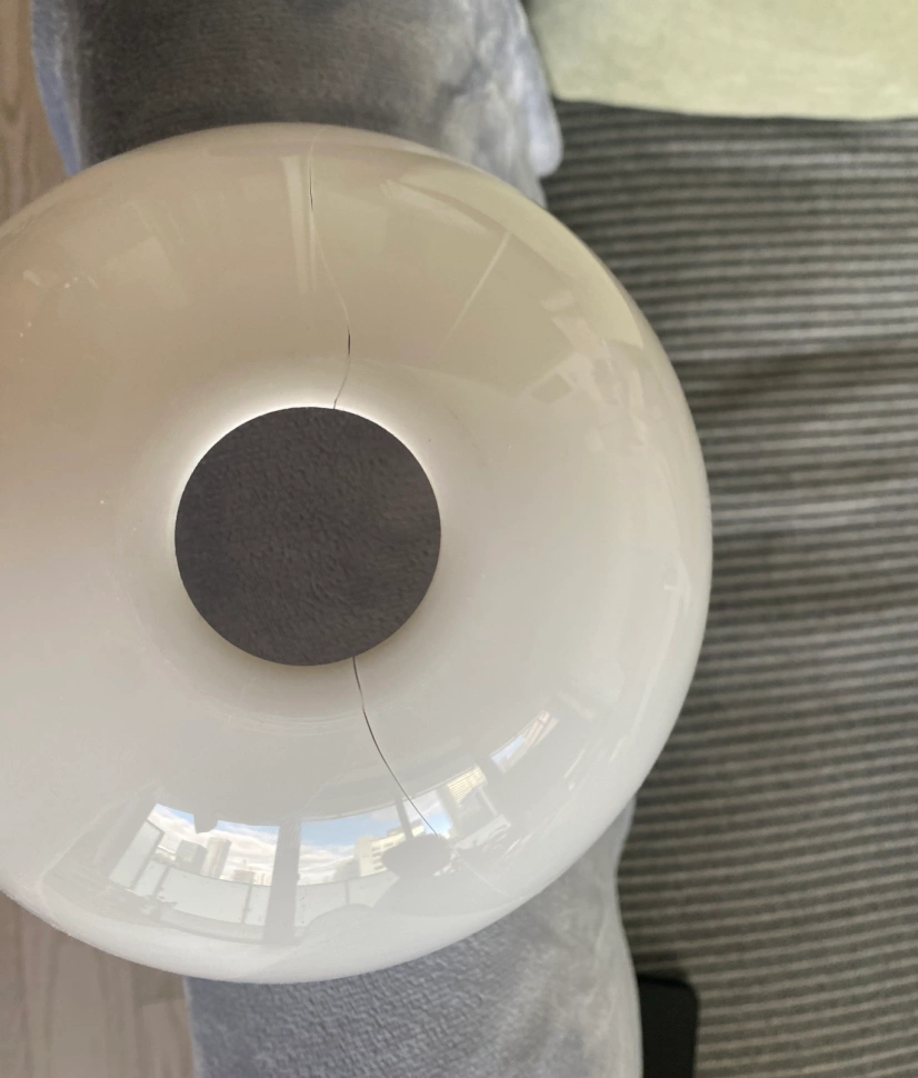 I have added the image of the small crack. Works perfect, selling due to move. Bought it at $29 plus taxes. Selling for $10 along with a white bulb.