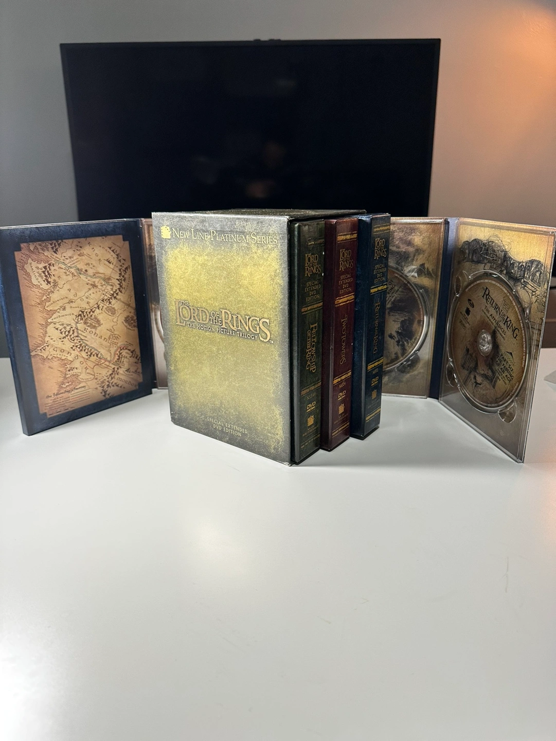 Lord of The Rings DVD series with collectors movie maps and CD’s! Unique piece in great condition as new! Can deliver for 60% deposit