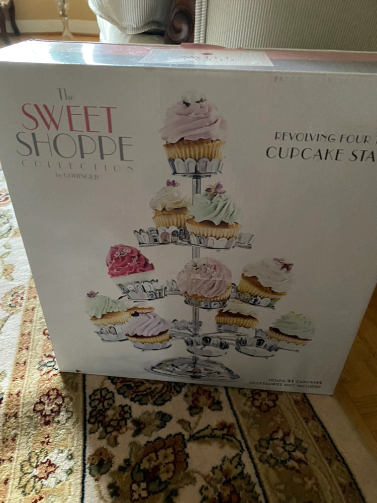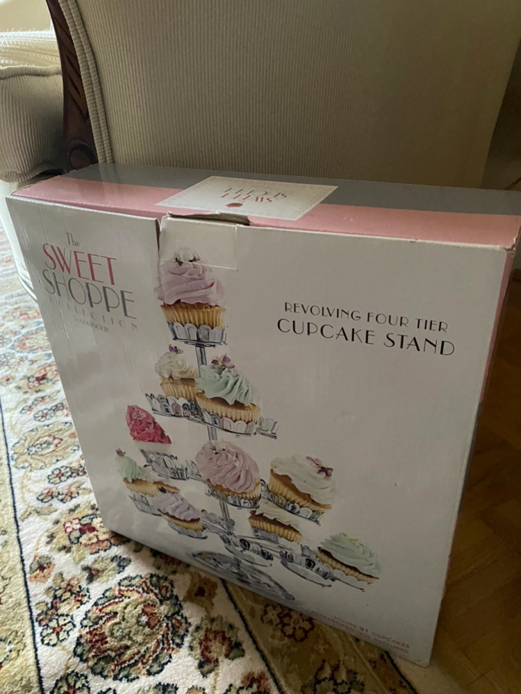 The Sweet Shoppe Revolving 4 tier silver cupcake stand.