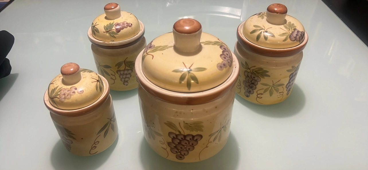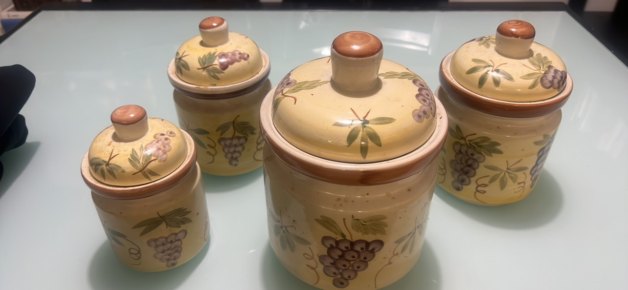 For sale: Dishwasher, and microwave-safe clay pots lightly used – perfect for storing your favorite pantry goods. Enhance your kitchen organization and add a touch of rustic charm. Available now. Grab these before they're gone!