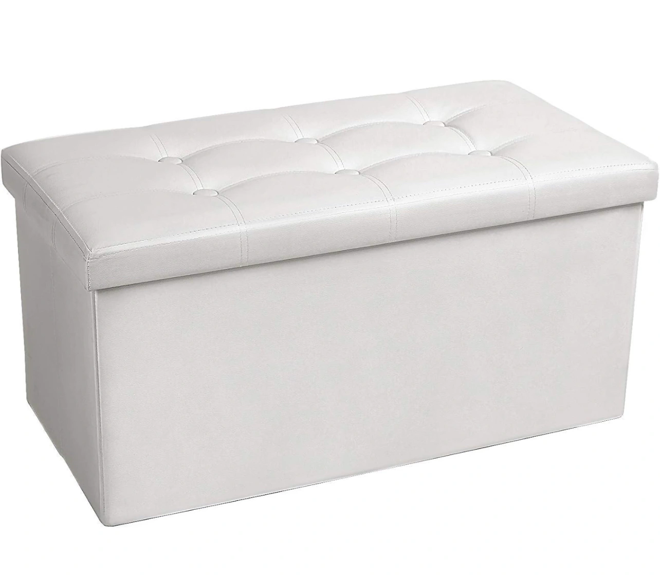 Folding Storage Bench Ottoman–30” Faux Leather Tufted Foam Padded Lid, White