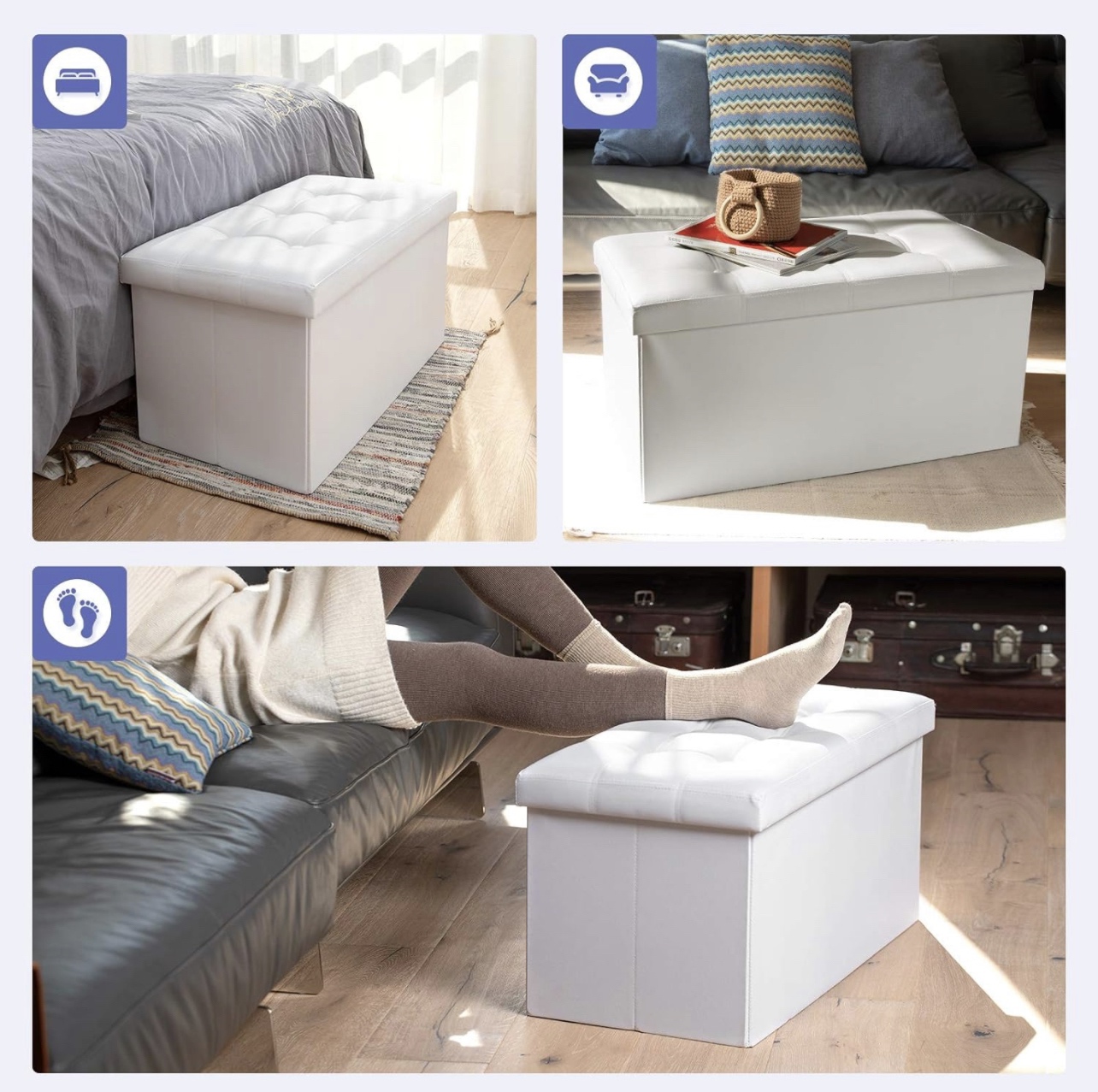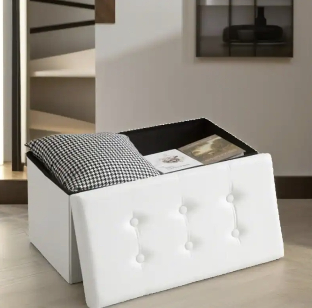 30” Folding Storage Bench Ottoman, White