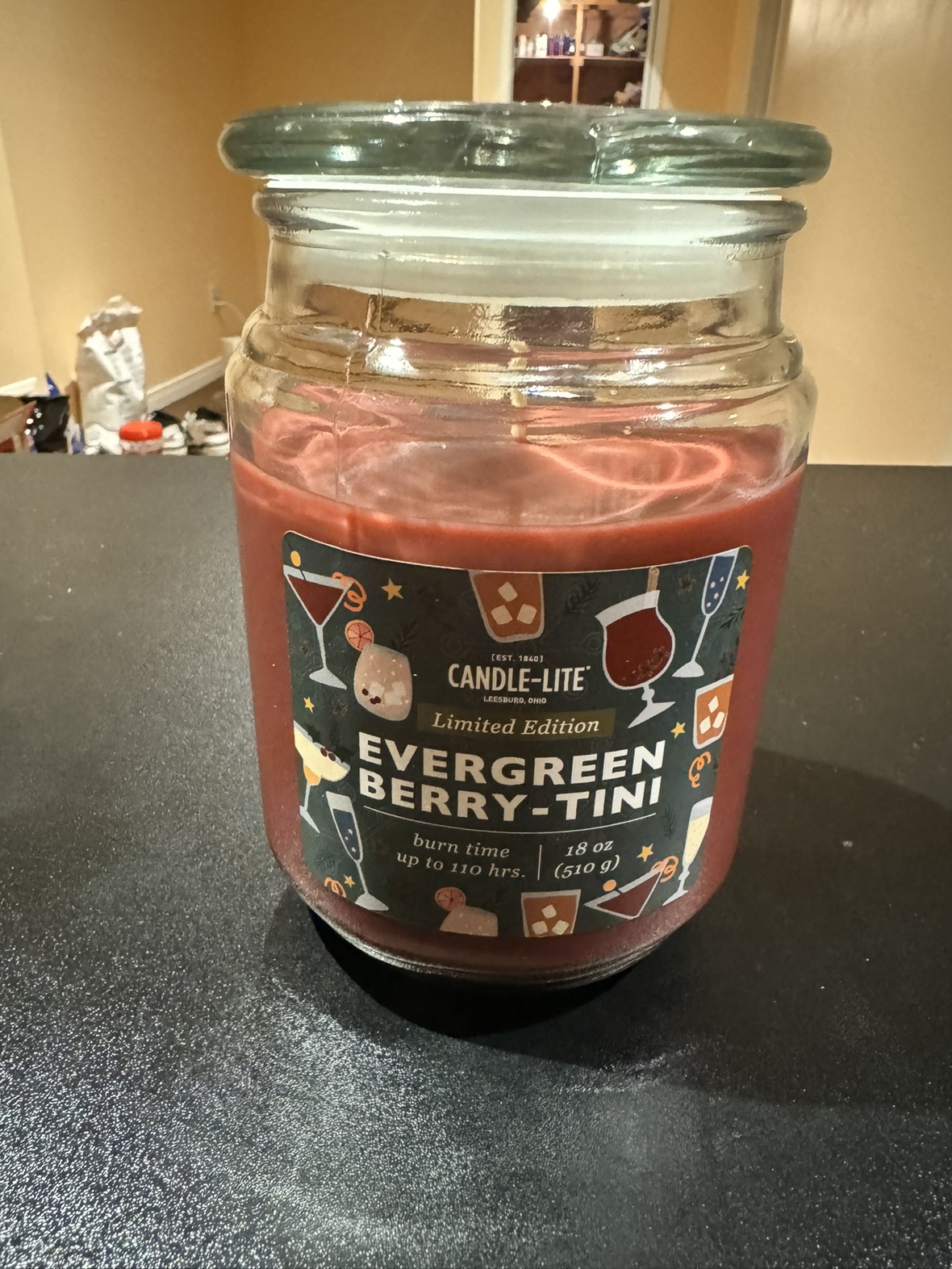 Brand new limited edition Candle-Lite scented candle (evergreen berry-tini) for sale. - 18 oz / 510 g - Burn time up to 110 hours