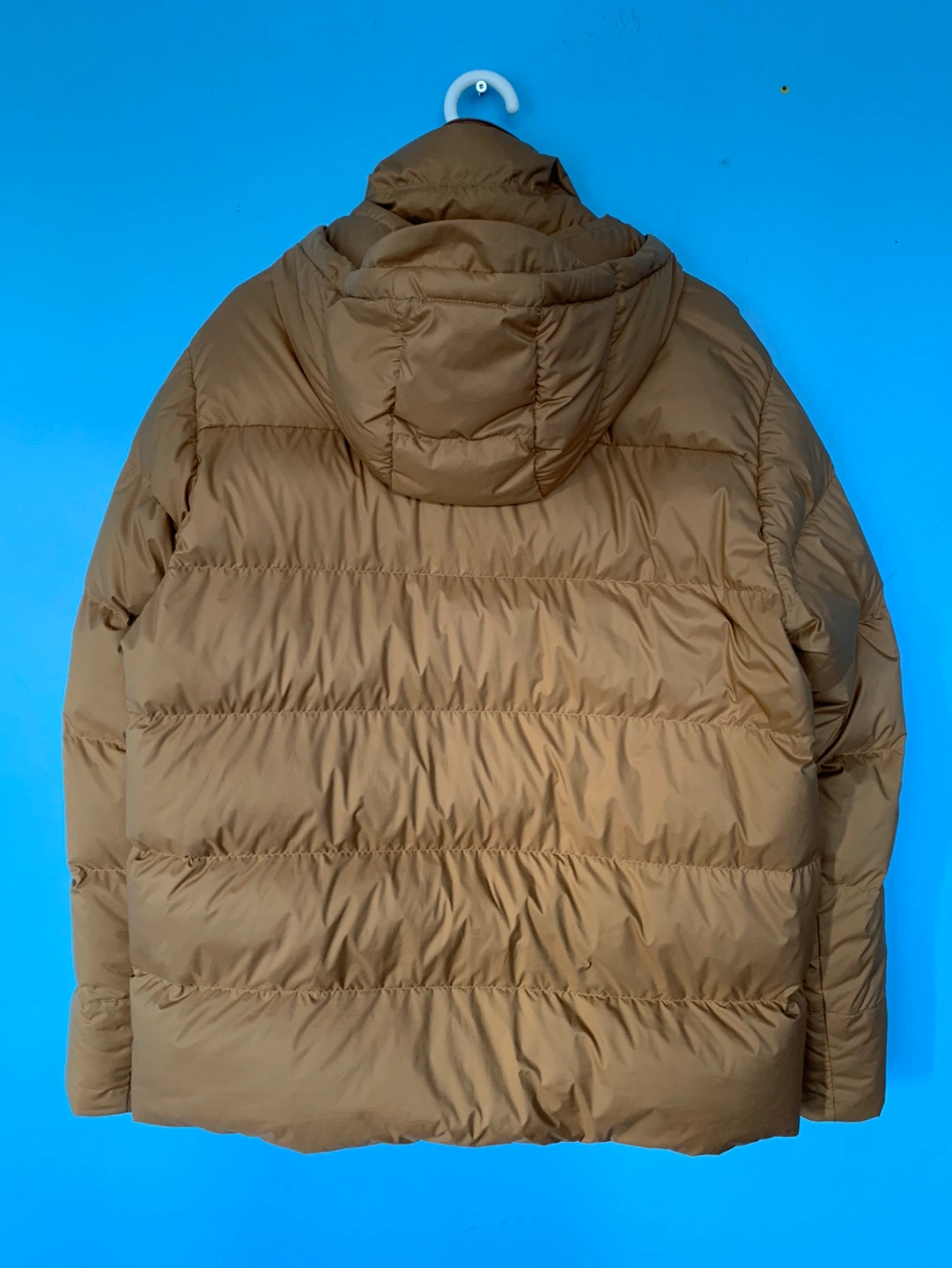 Silent down jacket from Patagonia. Extremely warm, and very well made. The brand speaks for itself. I wore it only 3 or 4 times before realizing it's too small for me. The hood can be removed by folding in to the collar.