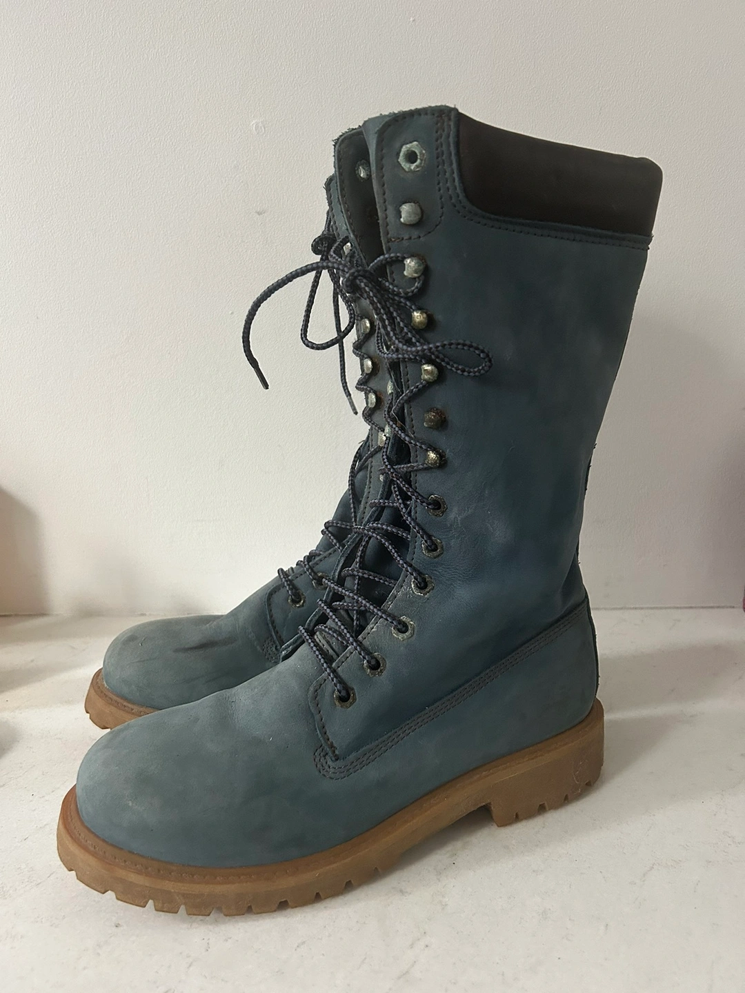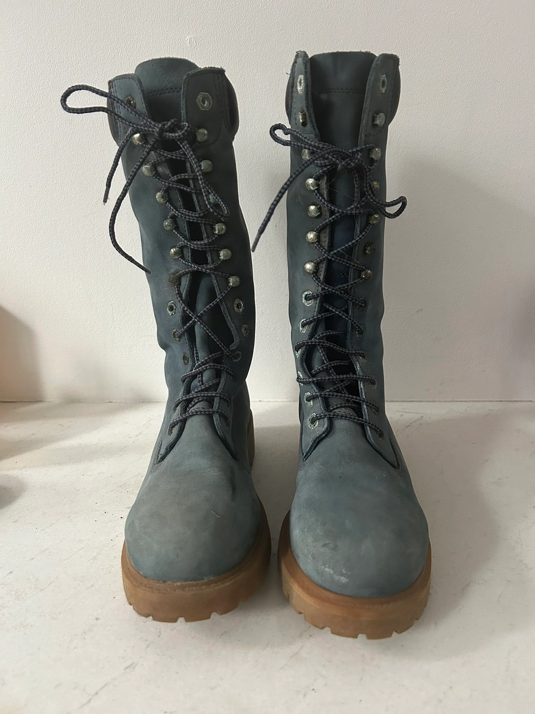Blue suede Dockster boots. Size 8