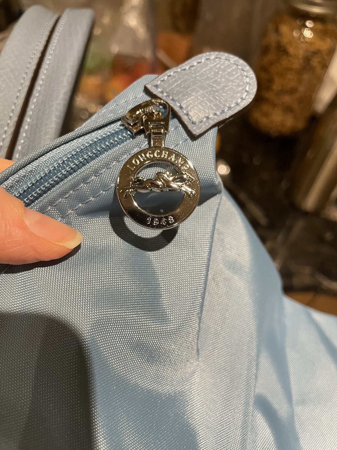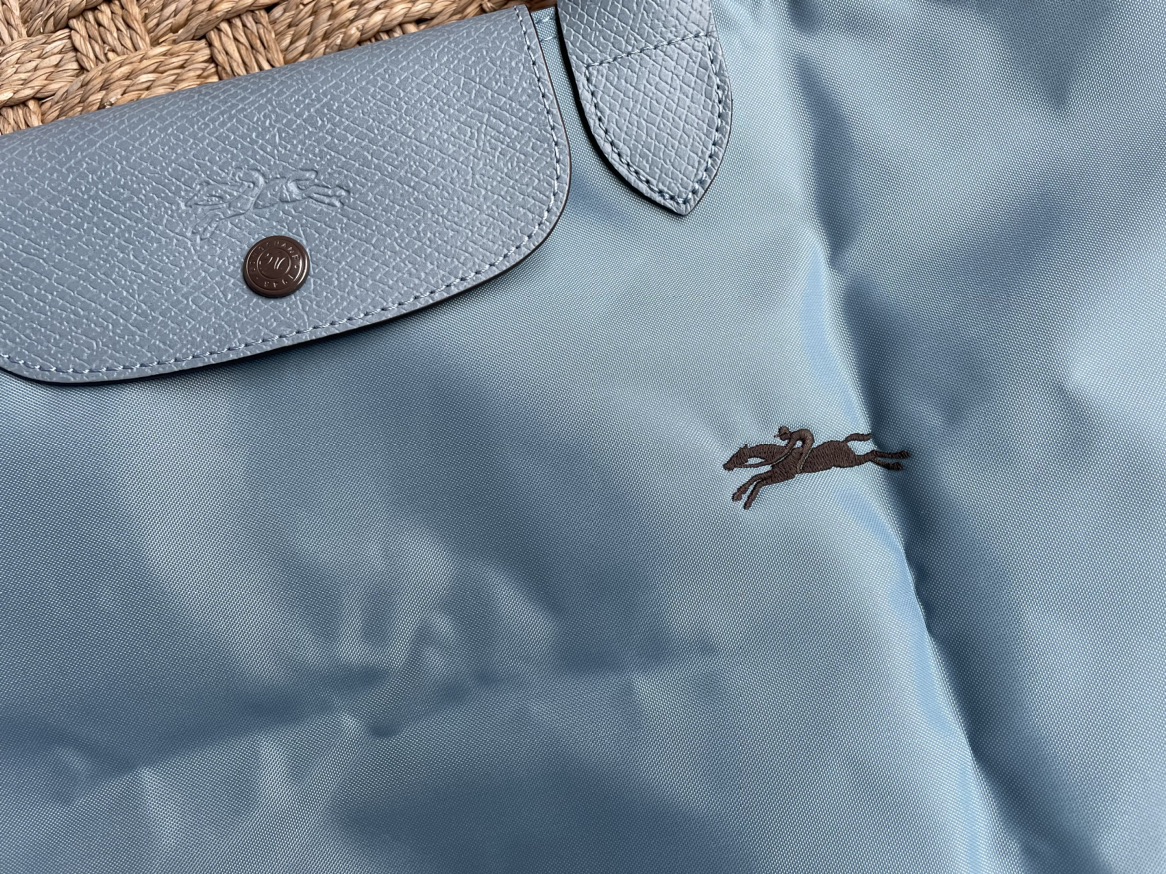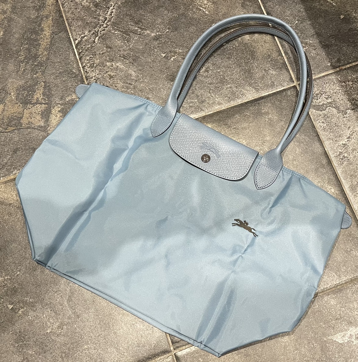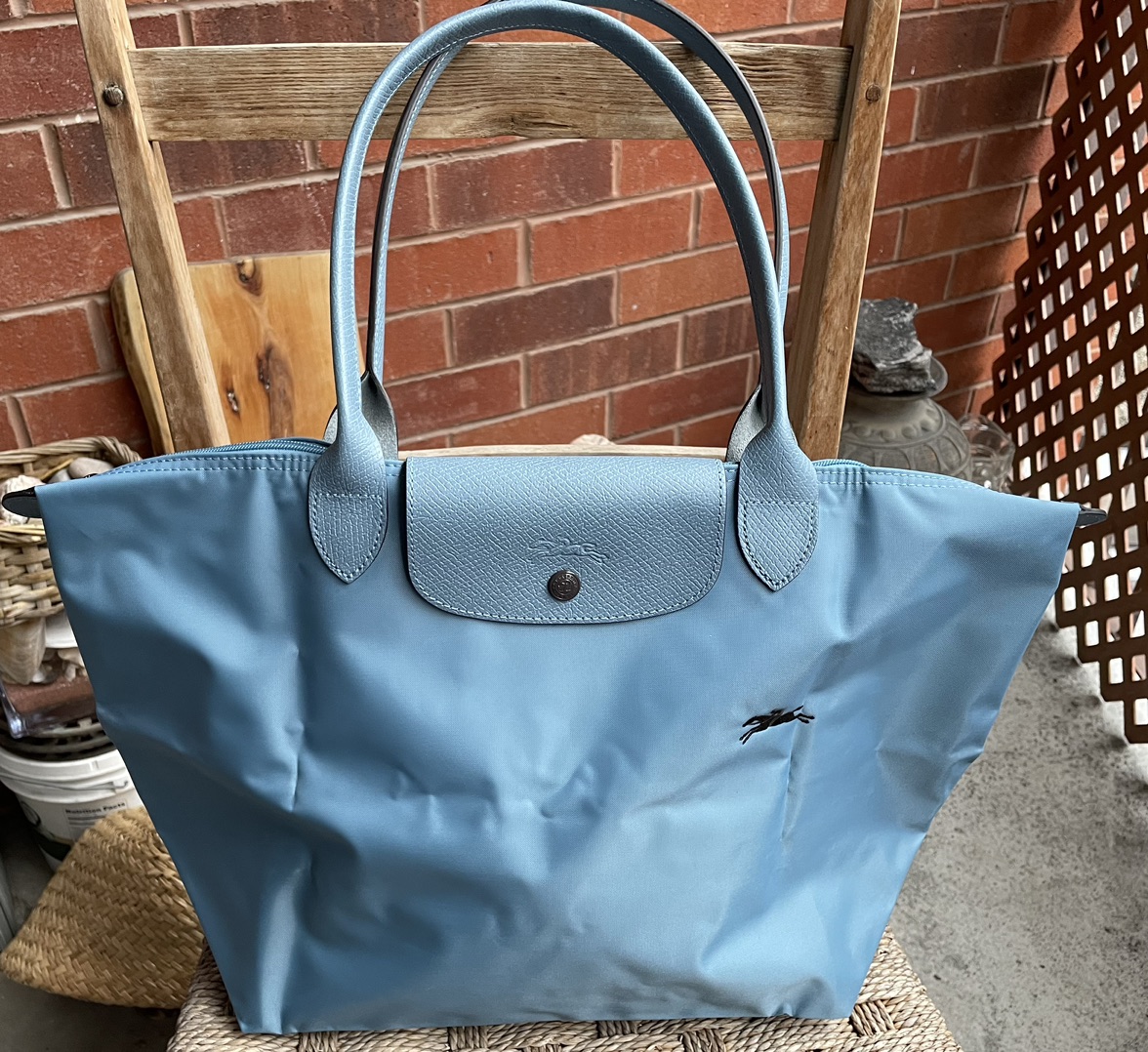 Brand new (in box including tissue paper) LONGCHAMP sky blue tote bag. It has a minimalist silhouette and compact volume. Its long handles allow you to wear it comfortably on your shoulder, while its zipper closure ensures the safety of all of your belongings. LONGCHAMP drew its inspiration from origami when with recycled polyamide canvas. It offers a second and more noble life to the materials used. It folds up neatly when not in use. It’s this sold out version: https://balilene.com/products/longchamp-le-pliage-club-small-shoulder-bag-norway which retailed for $179.94 Composition: - Recycled Polyamide; Trim: Leather - Snap tab, zipper closure - Imported Size Width: 19” Height: 12” Base width 7.5” Handle Drop: 8.5''