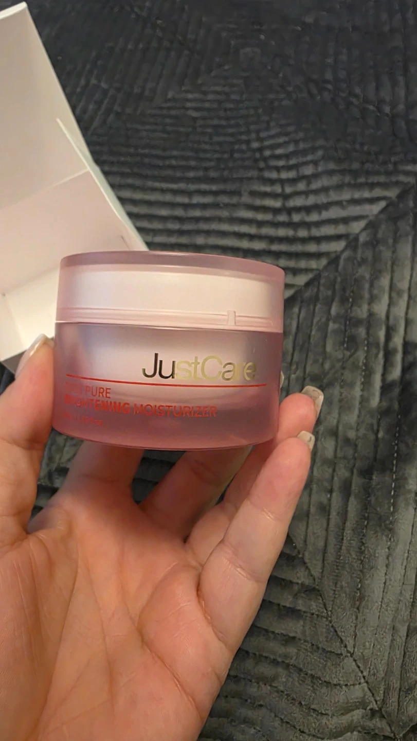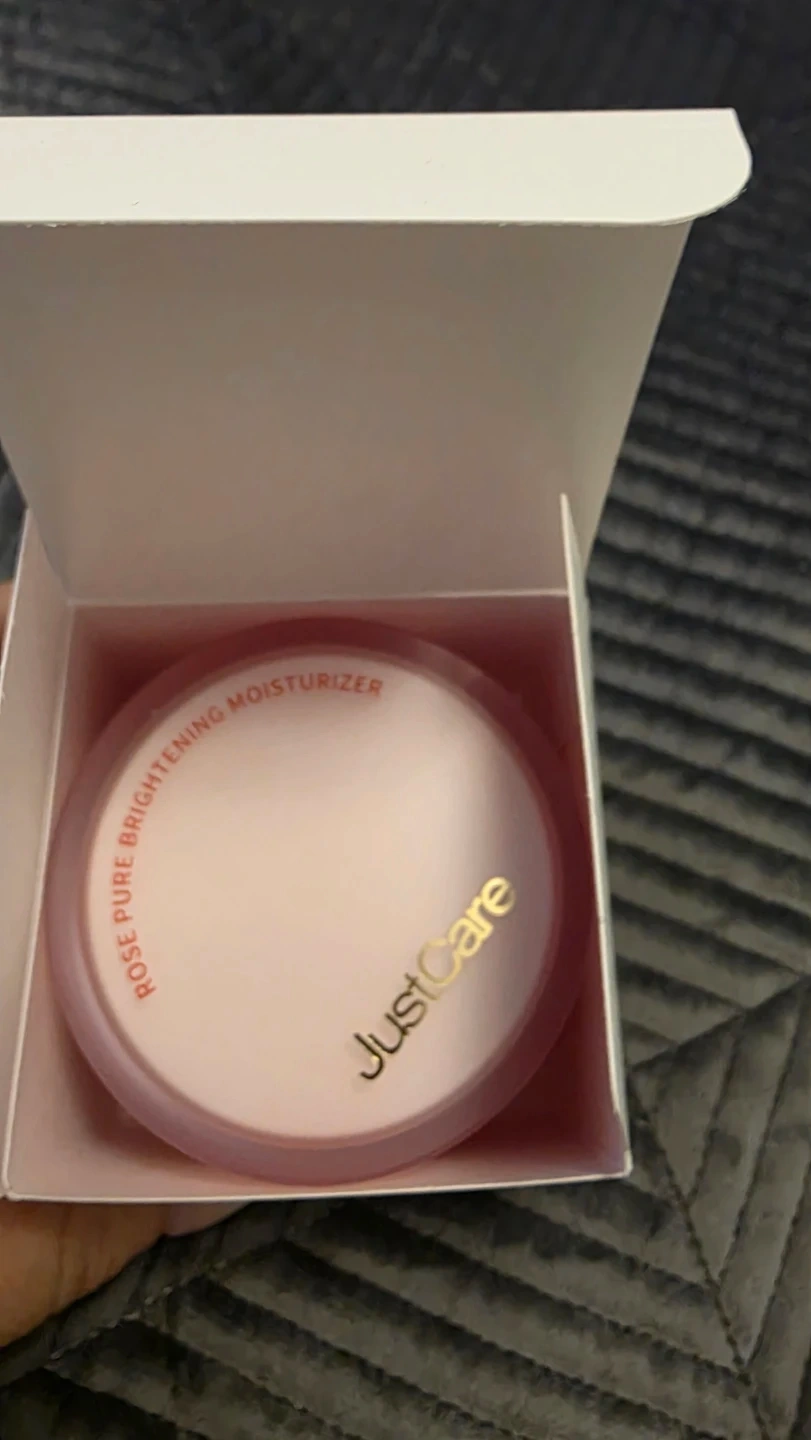 This is JustCare Rose Pure Brightening Moisturizer. It's 50ml, or 1.69 fl oz. This moisturizer is designed to brighten your skin. It comes with its original box.