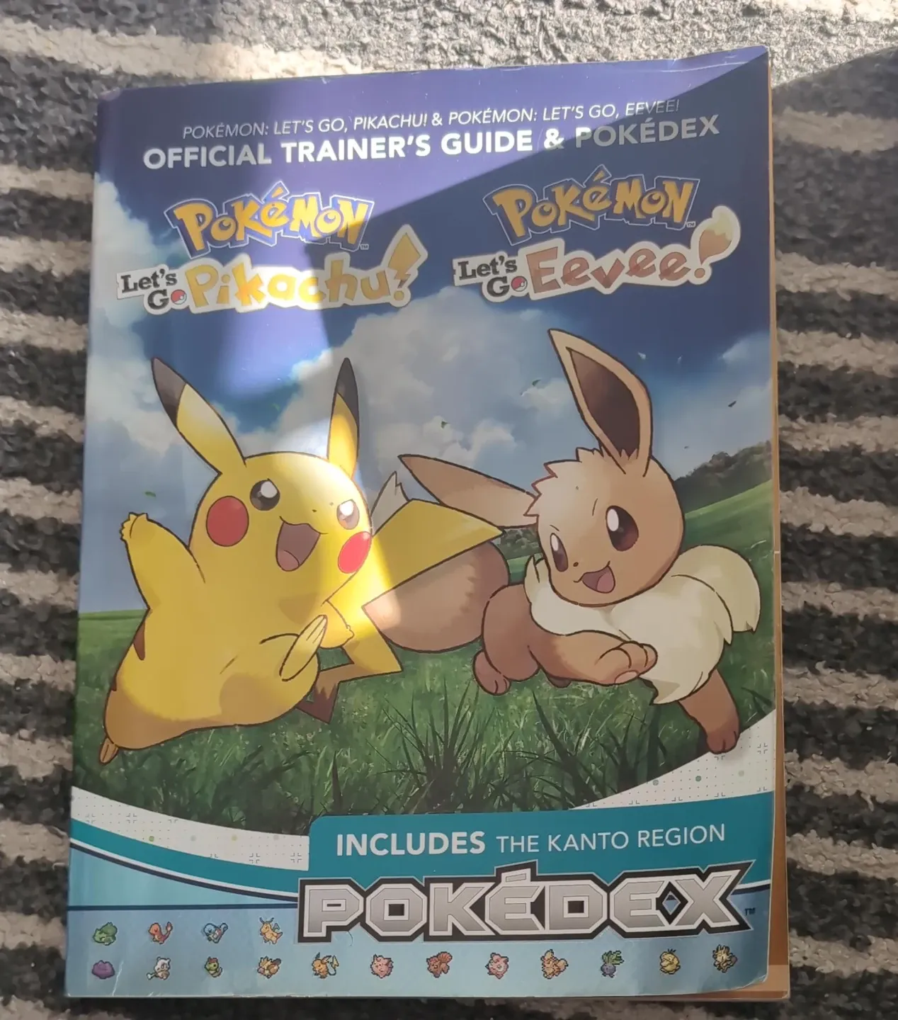 This official trainer's guide and Pokedex covers the Kanto region for Pokemon Let's Go Pikachu and Pokemon Let's Go Eevee. It includes details on Pokemon, stats, and gameplay elements. Also includes stickers (minus 2), bookmark, Kanto map & type match up chart. I also have the pokeball plus and travel case as well.