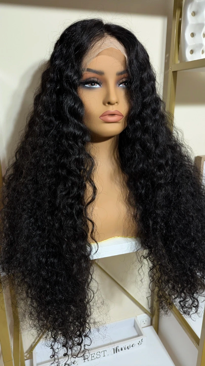 28 inches Black Curly 14x4 lace Front human hair Wig
