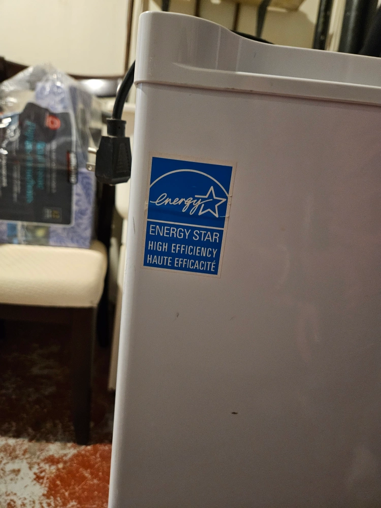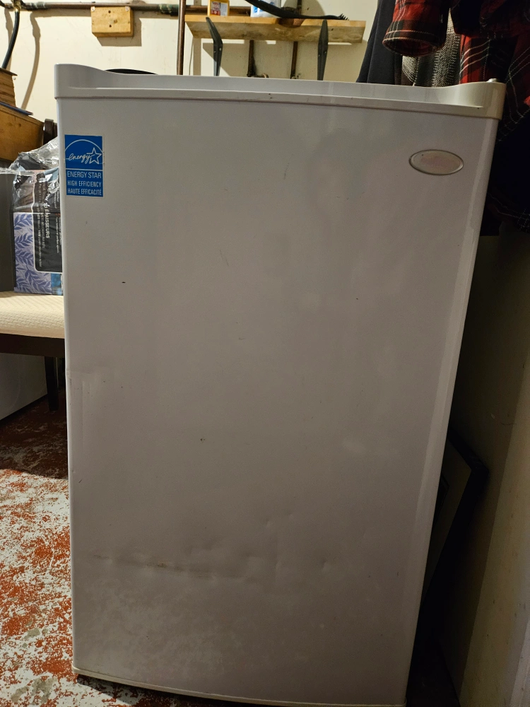 Small upright freezer, works perfectly. Small ding on the front but doesn't affect usage. Perfect for an apartment or as extra freezer storage in the basement.