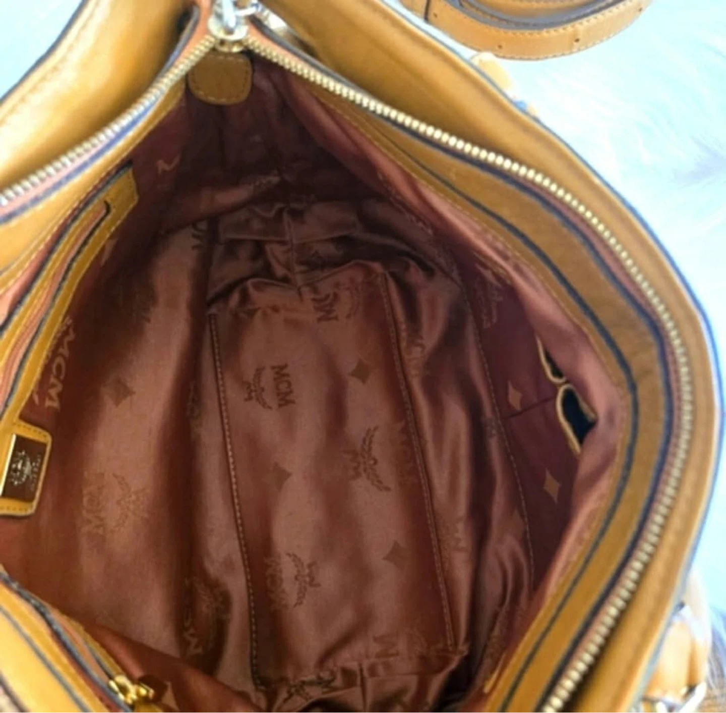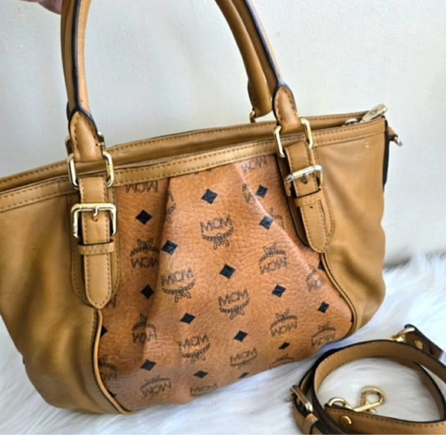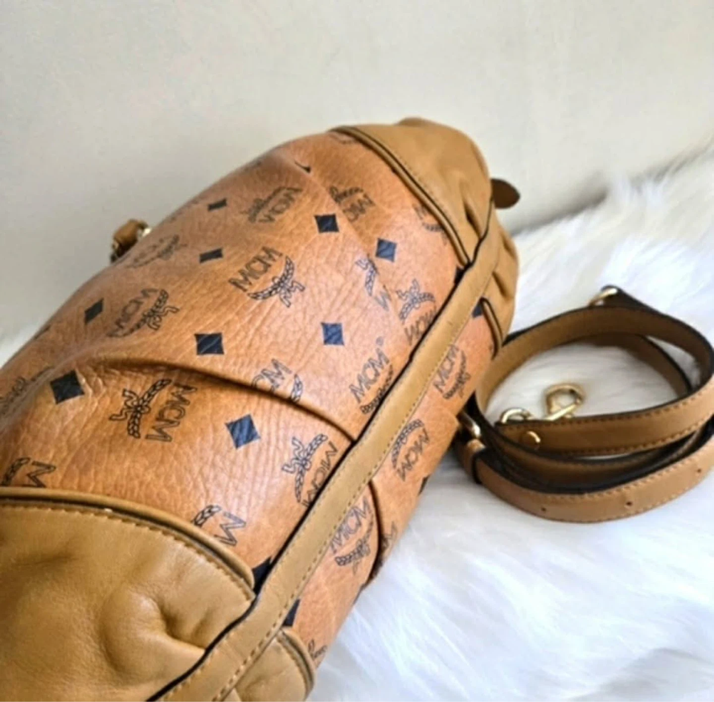 MCM tote bag in classic Visetos print. Leather trim and handles. Includes adjustable shoulder strap. Interior is lined with MCM logo pattern.