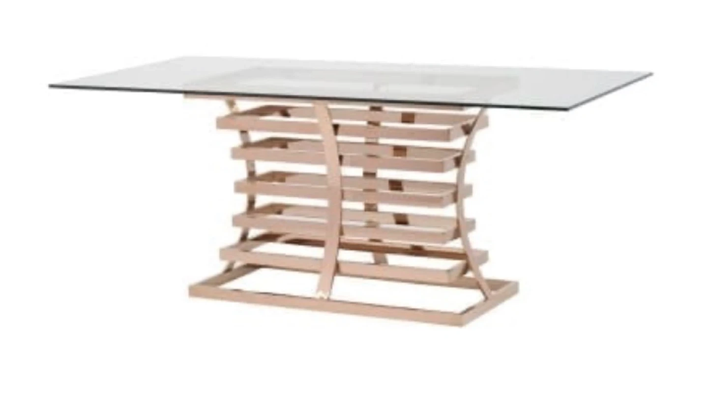 Glass Top Dining Table with Rose Gold Base