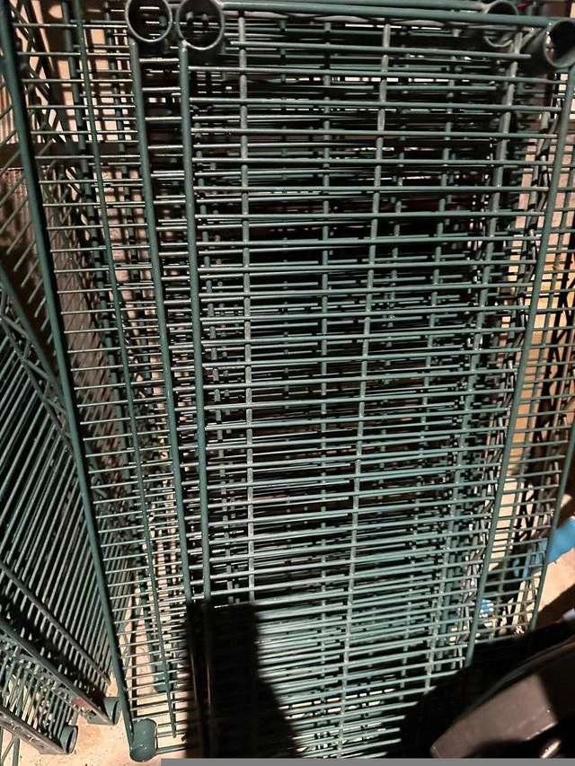 This commercial grade shelf is unassembled and can be fitted to various spacing heights. It's great for storage. The shelf is 53 inches tall, with shelf lengths of 34.5 inches and a width of 11 inches. Feel free to message if you have any questions!