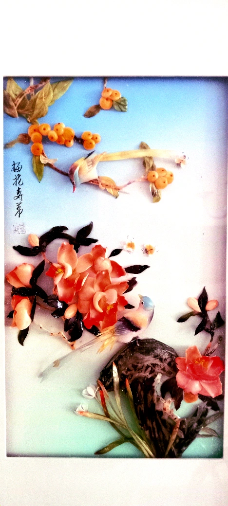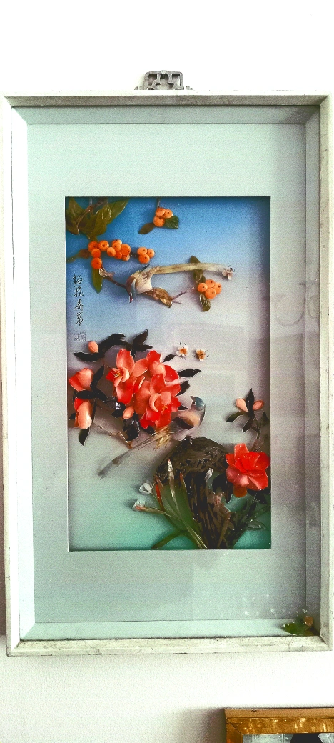 vintage 70s gorgeous 3d shadow box shell art from 70s, handmade with shells and mother of pearls.