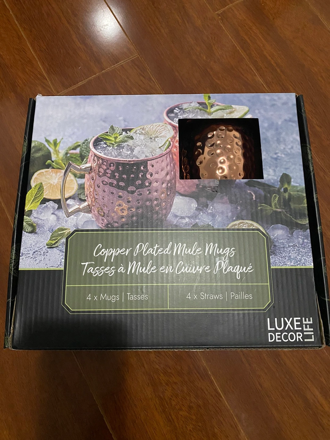 Brand new unopened Luxe Decor 4 copper plated mugs