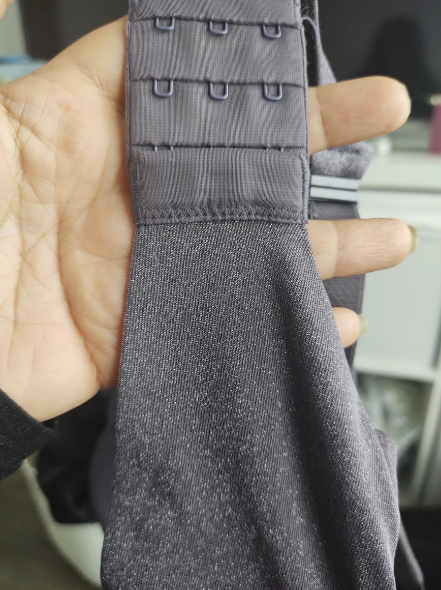 A beautiful shimmery bra in grey with racer back full coverage. Three hooks.