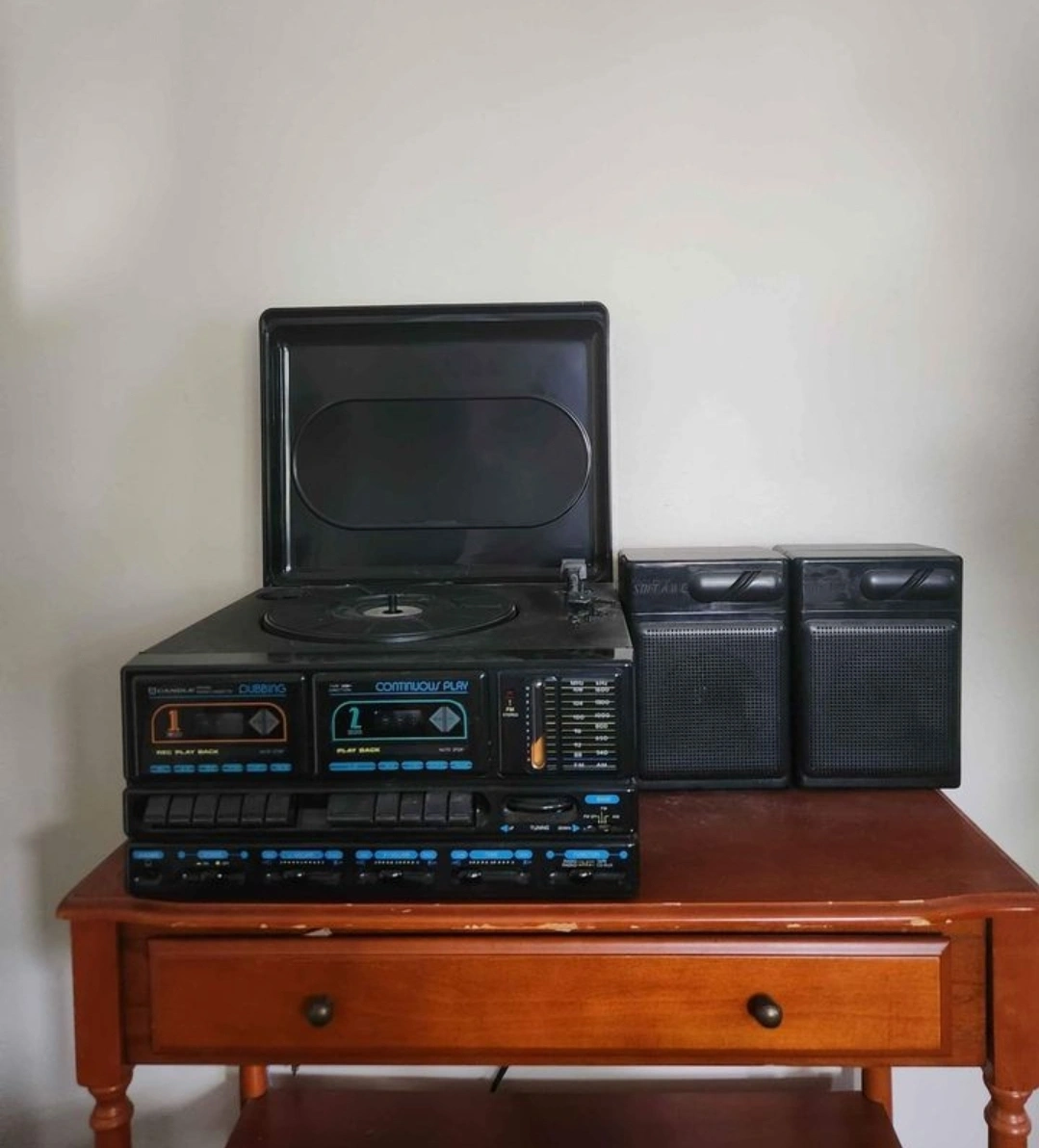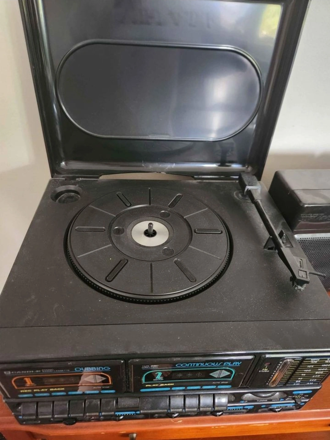 Very cool functioning turntable from the early 90s/late 80s. Works great however the wire for the speakers should be replaced as they can be quiet staticky at certain volume settings. Pickup near davisville subway station.