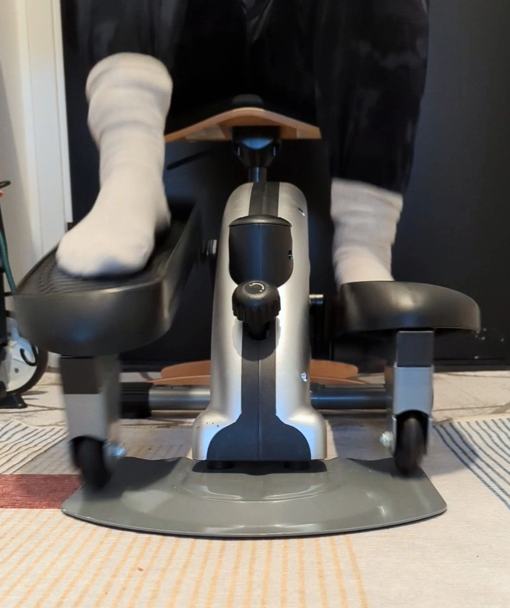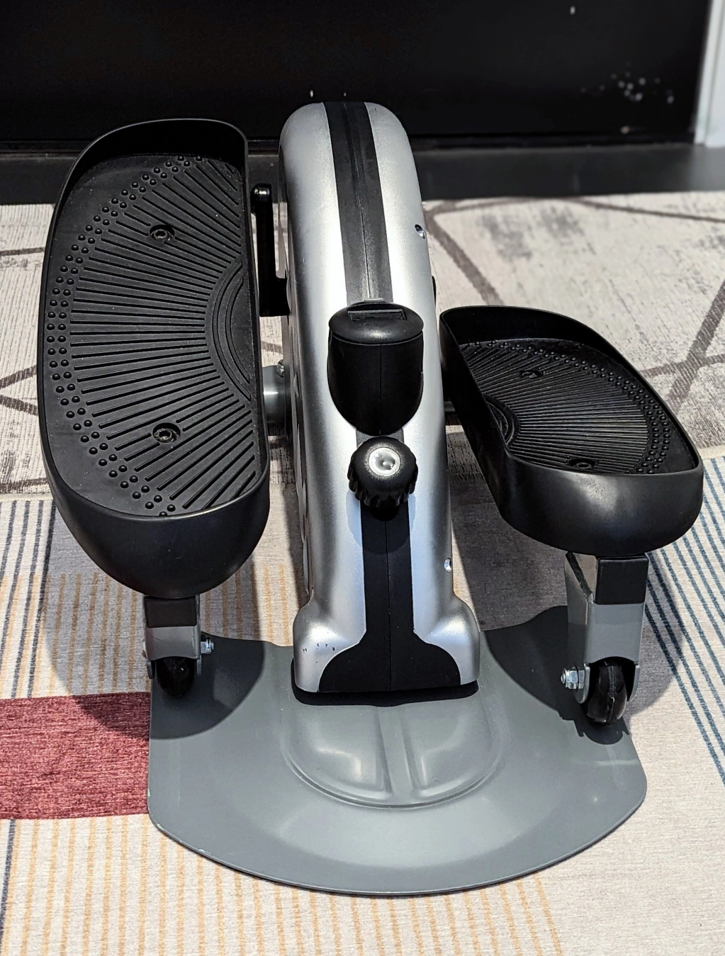 This seated elliptical acts like a bike pedal but is also heavy duty enough to be used standing.