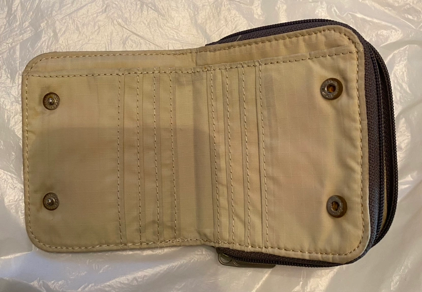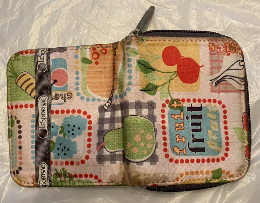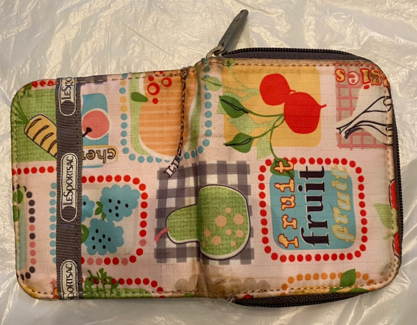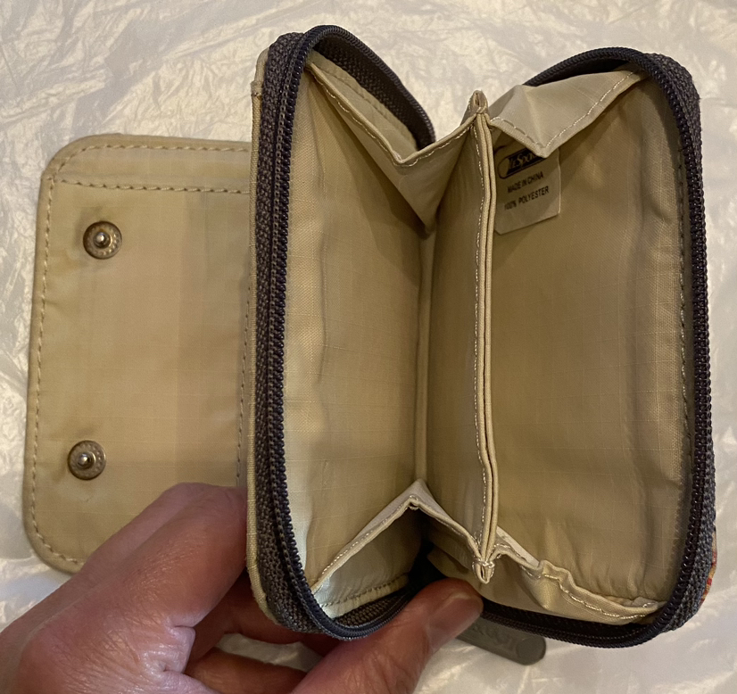 Decluttering. LeSportac zipper wallet with compartments. Not needed. Using Fanny pack & coin purse now.
