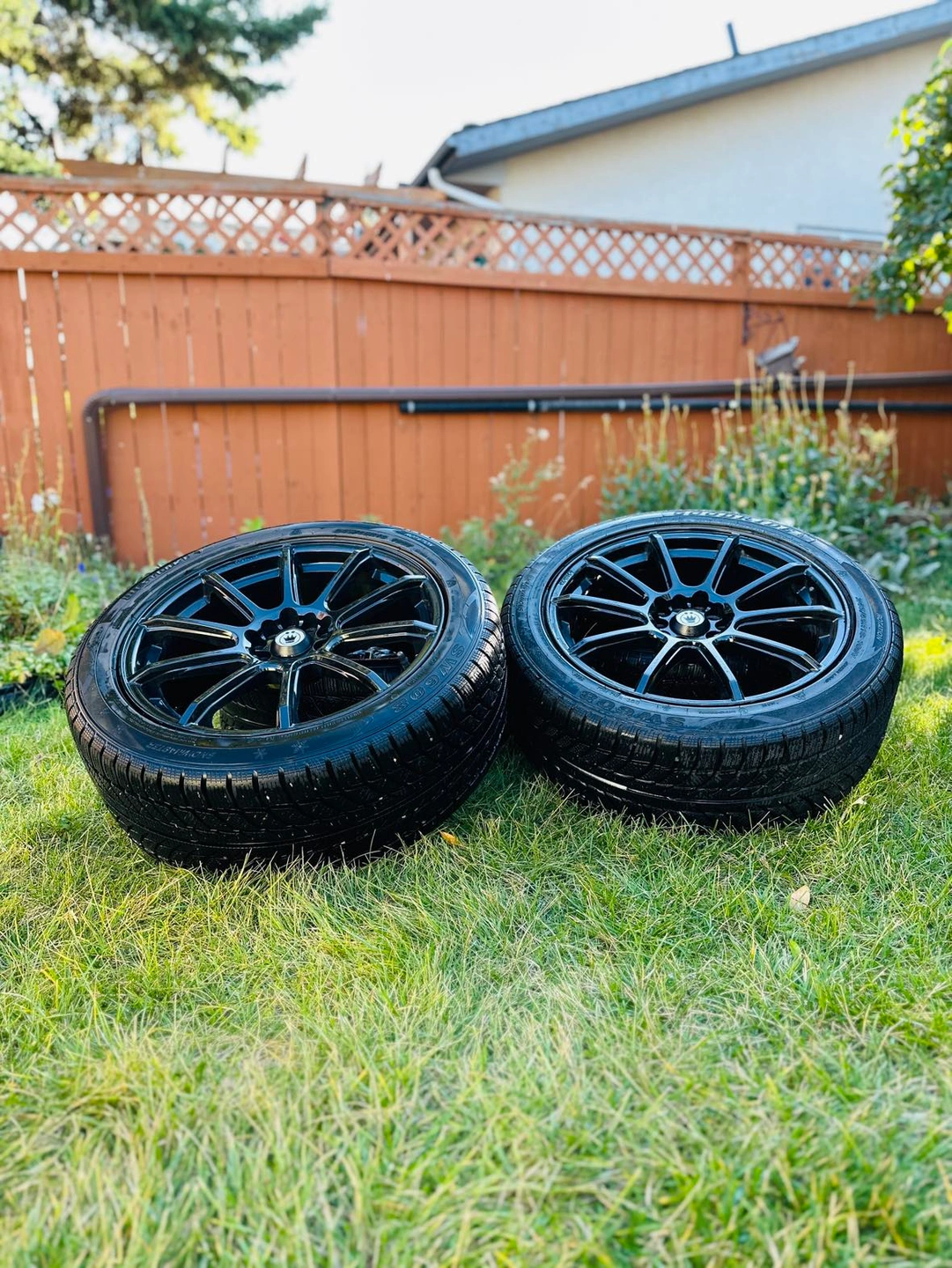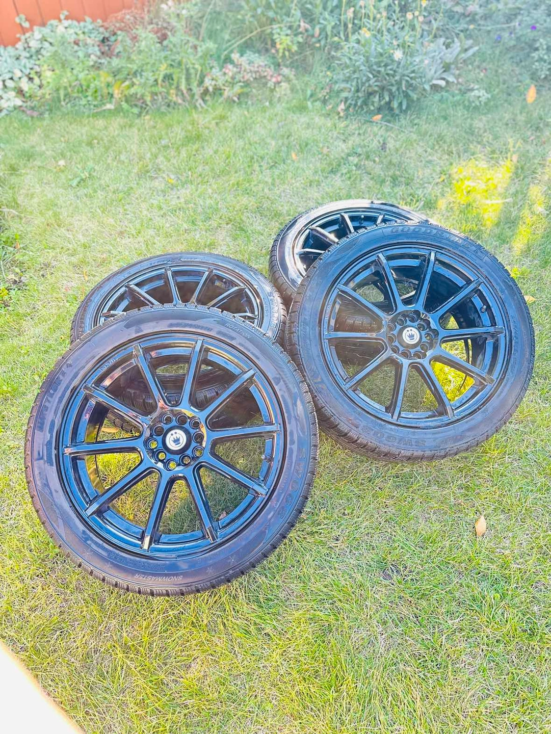 Barely used (double snowflake) winter tires on rims with 10 lug bolt holes for multiple bolt patterns 245/45R18 18 inch rims. Came off of my 2018 Nissan maxima.