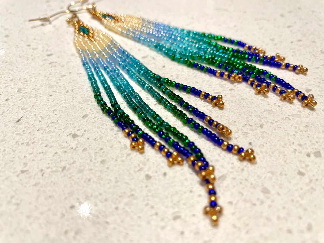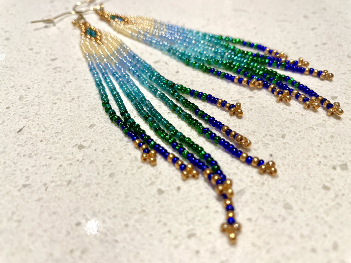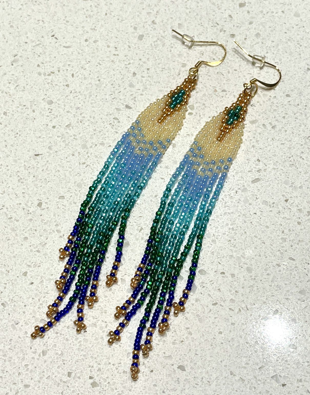 Pick up at Dundas and River Made by Juliet Mackie, a Métis artist in Montreal. 5” long, beautiful oceanic colours. Very elegant Originally purchased at $60