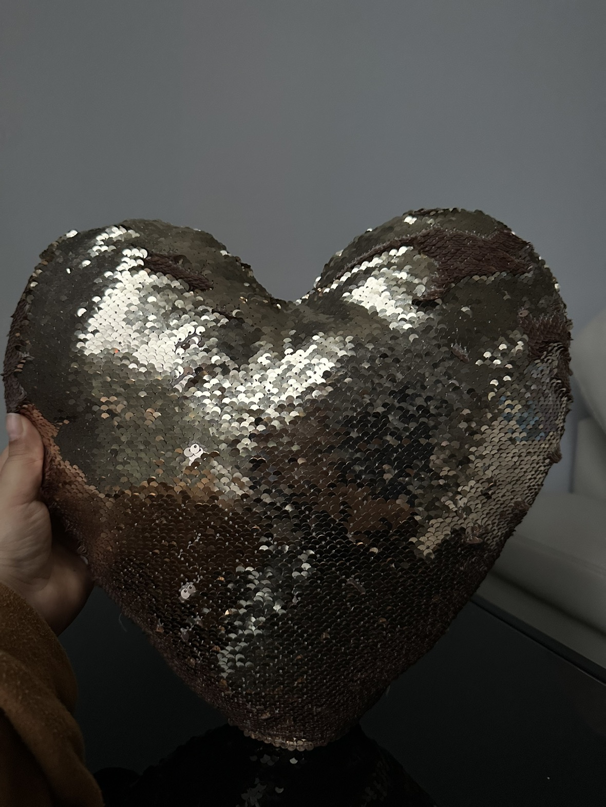 Beautiful heart shaped decorative pillow in great condition, the sequins is interchangeable so you can move it around and change the colour