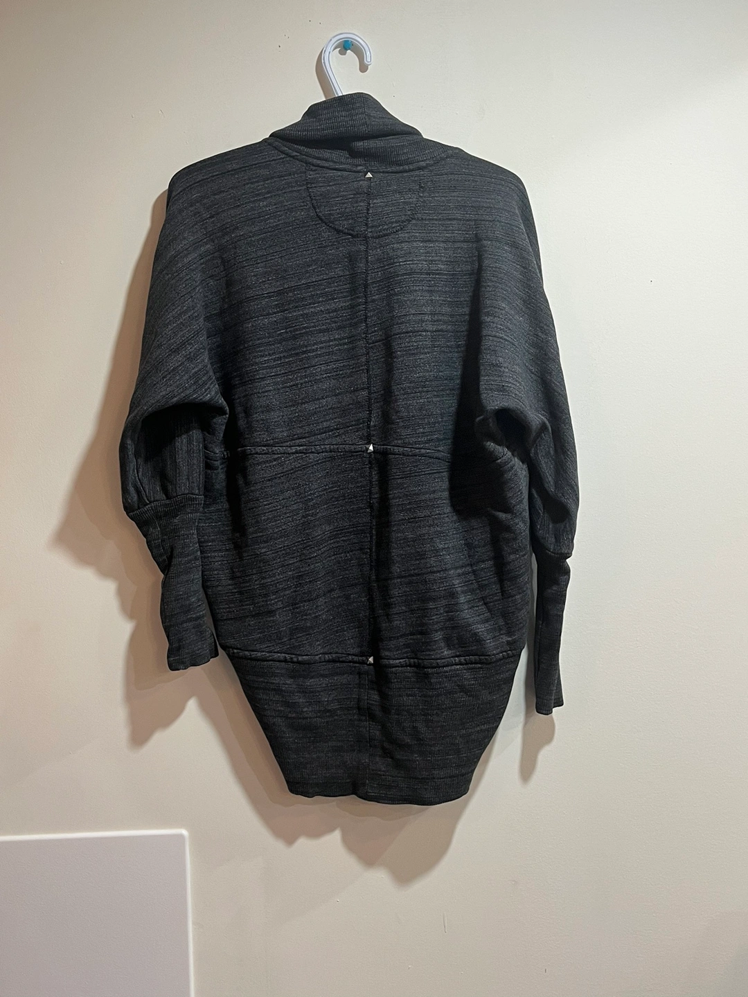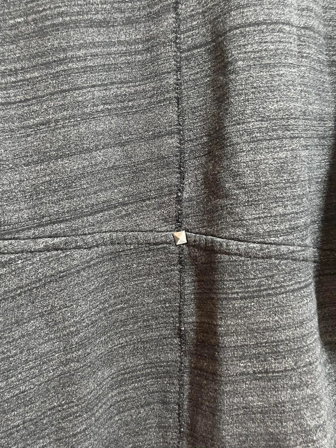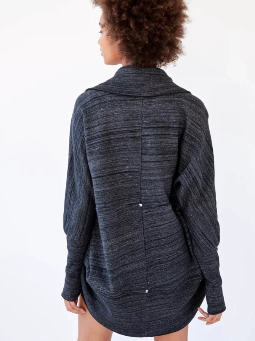This is a cocoon sweater with ribbed sleeves and pyramid stud details. It's made with a brushed fabric that's super soft
