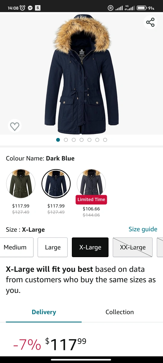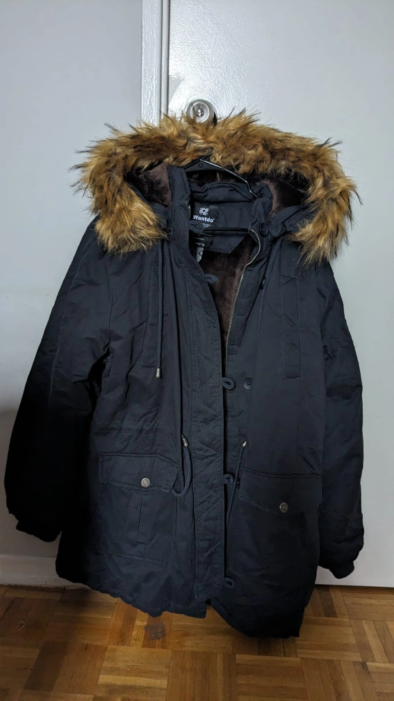 Winter Jacket size XL for women. It is padded and has fur hoodie.
