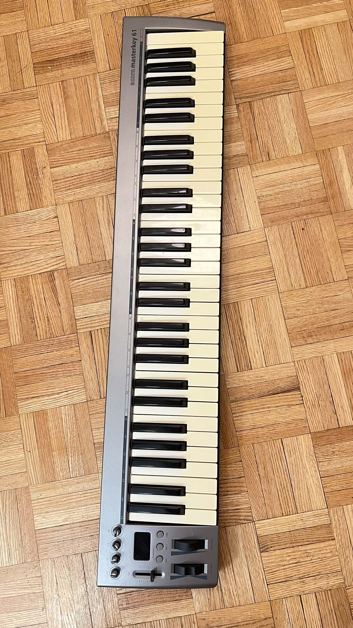 121Acorn Masterkey 61 Model Number B&H # ACMK61 Manufacturer # MASTERKEY 61 Like new, works perfectly. Only the keys got yellow. USB / MIDI Controller Keyboard 61 Keys, Synth Action MIDI Control Surfaces 1 x Wheel (Pitch-Bend) 1 x Wheel (Modulation) 4 x Rotary Encoder 1 x Slider Connectivity I/O 1 x USB Type-B Power Power Options USB Bus-Power *Please note that this is a MIDI controller and needs a computer with a midi sequencer to produce sound.