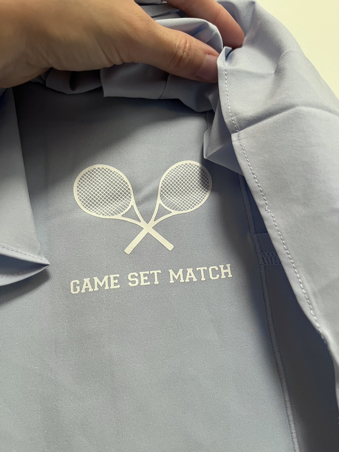 Barely worn! Super cute and soft. Great for fitness use or just a cute outfit. The shorts have pockets and “Game Set Match” tennis racket print on the bum.