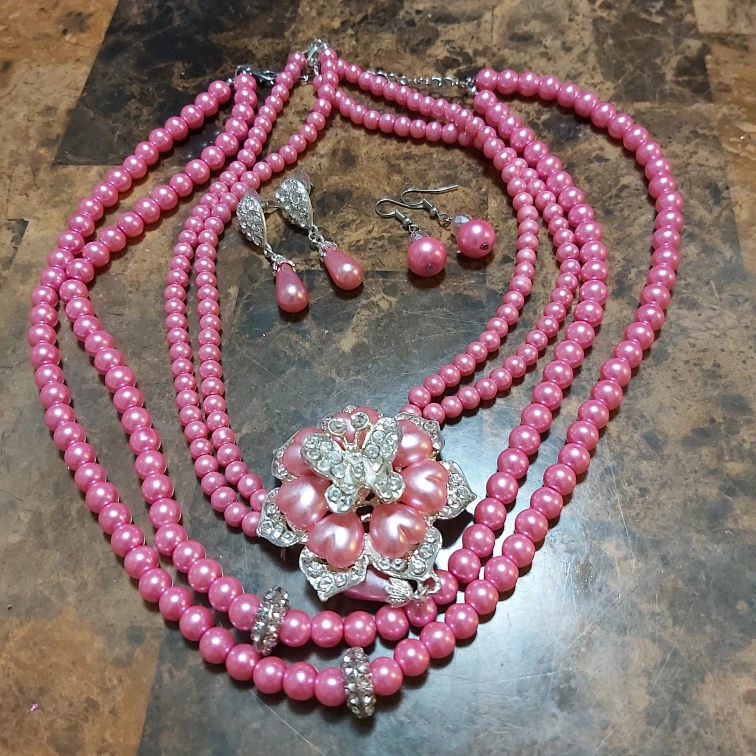 Pink Butterfly Necklace Set.