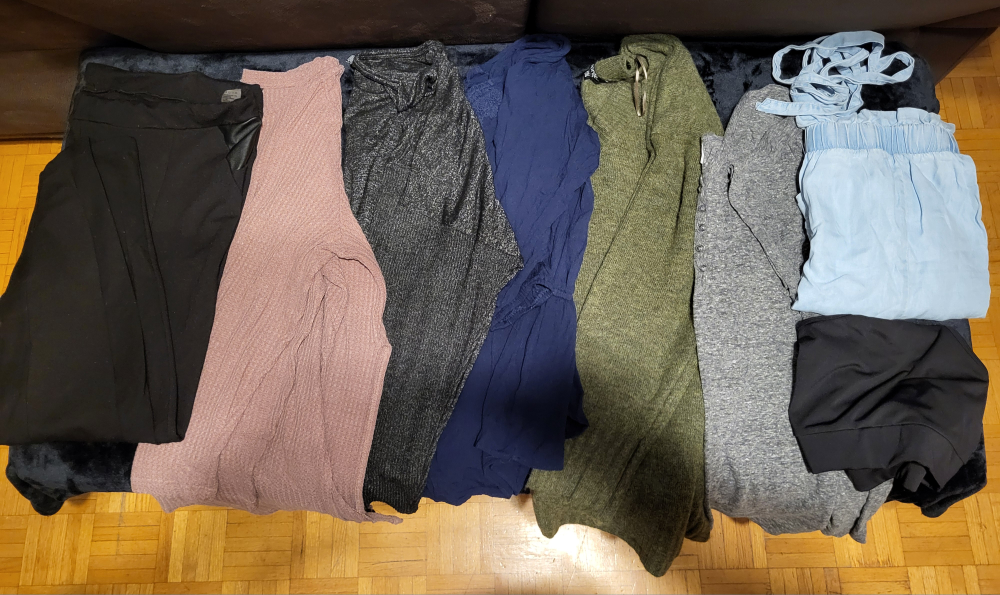 359Pick up in Toronto, near keele and finch Smoke free, kitty friendly home 8 pieces. sports bra, shorts, cami, sweater, long sleeve, leggings and shirts. Gently worn or new items