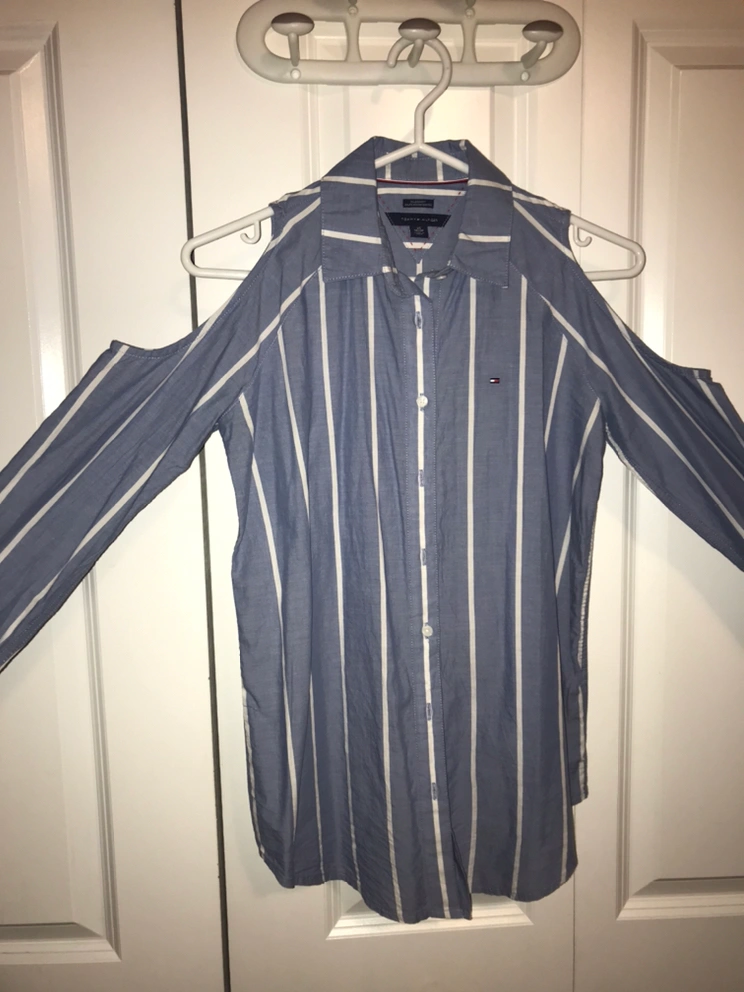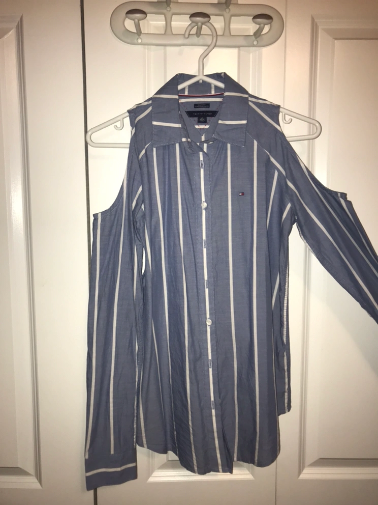 - Stylish Tommy Hilfiger shirt with shoulder openings.