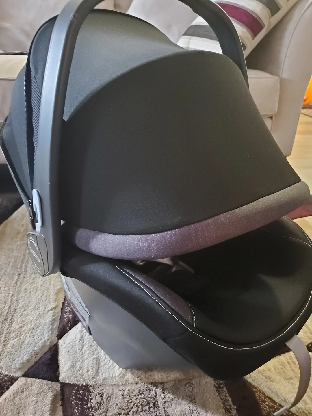 Well cared for Peg Perego infant car seat. Purchased at Bed Bath Beyond in 2020. I'm a clean freak so this car set looks like new, no spills, no stains, no odor, and no accidents. It came highly recommended for safety by several different companies that sell baby gear. Canopy comes all the way down to shield baby, as shown in pic.