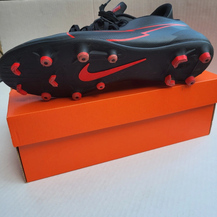 Black and red with outlined swoosh on the sides and solid red swoosh on the bottom.