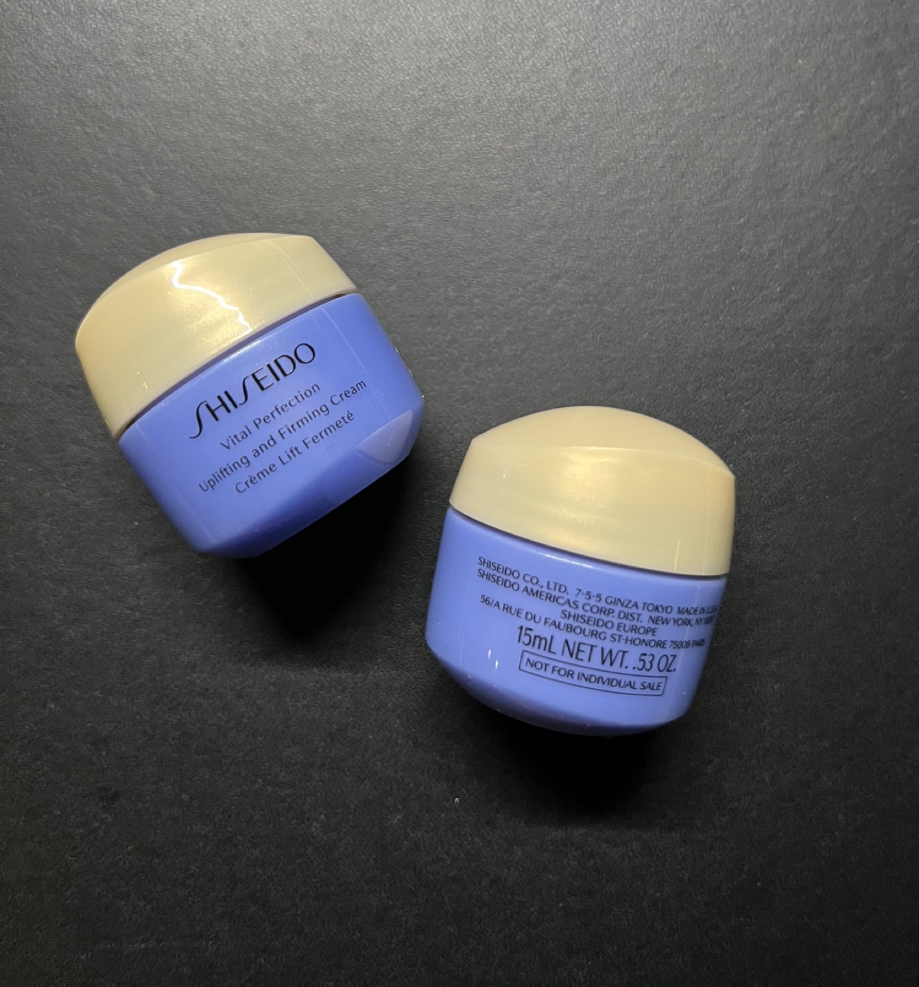Two brand new (unopened) travel sized 15ml Shiseido Vital Perfection Uplifting and Firming Cream