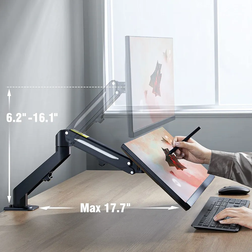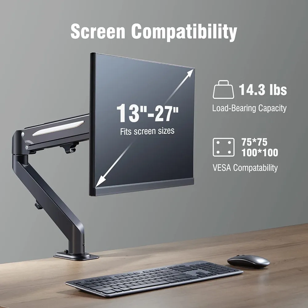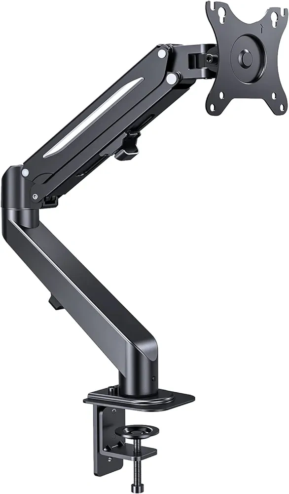 ERGONOMIC SOLUTION: Raise your display to a more ergonomic height with this single monitor arm to reduce neck and eye discomfort. The gas spring single monitor arm mount allows you to adjust display height from 6.2 to 16.1 inches tall.