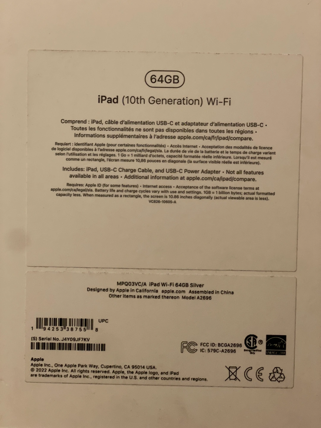 Brand new Silver iPad 10th Gen 64 GB, Wi-Fi.