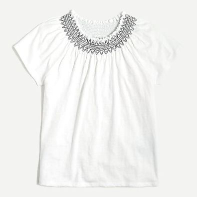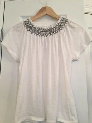 **Pickup YONGE EGLINTON area or, with prior arrangements, PARKLAWN LAKESHORE area** Brand new without tag J Crew embroidered white smocked t shirt Size small (loose casual fit) Please check out my other ads for bundle discount