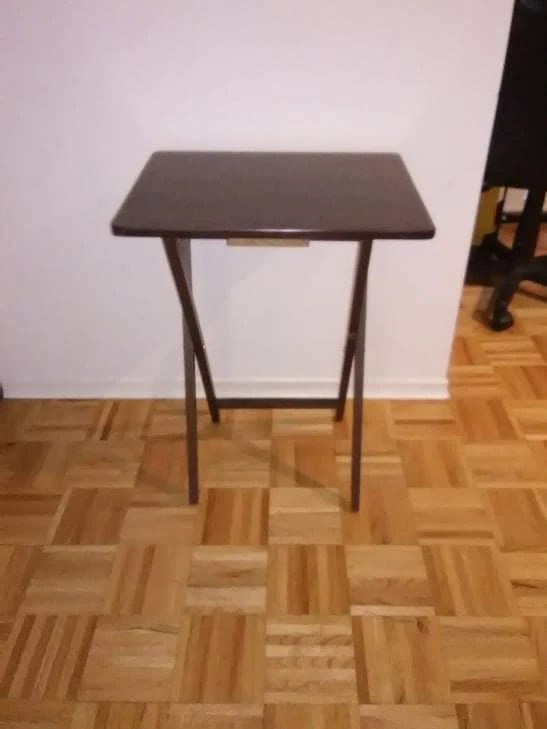 Table can be used in tv, bedroom, or wherever you need extra space. Bought it but only used it a couple times. Decluttering because we don't really need it. Folds for easy moving and storage.