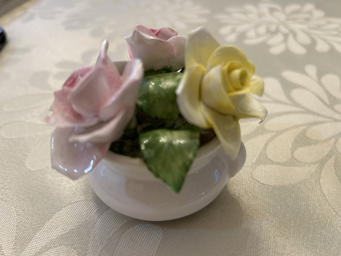 Radnor hand painted bone china. Perfect for a gift for someone who is in the hospital or cannot take care of real flowers. Perfect condition. 2 3/4” high.