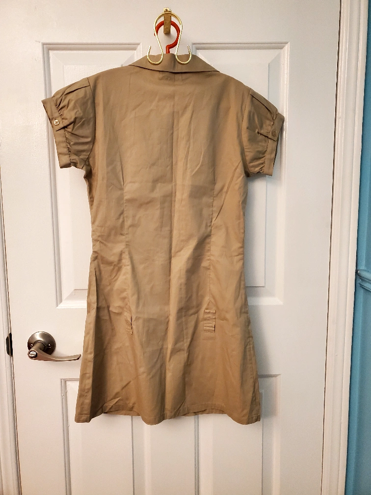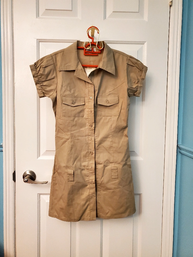 tan coloured shirt dress size xs new with tag can be worn as dress or as long shirt with leggings/ skinny jeans