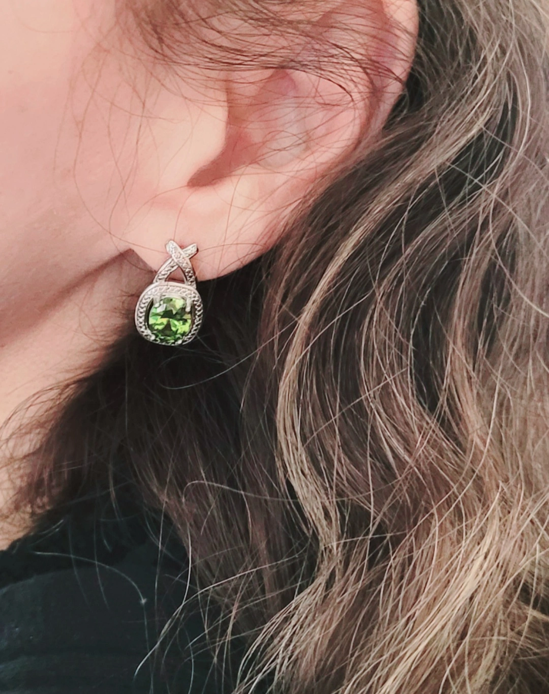 A pair of Peridot and Diamond earrings super lucky for 2024