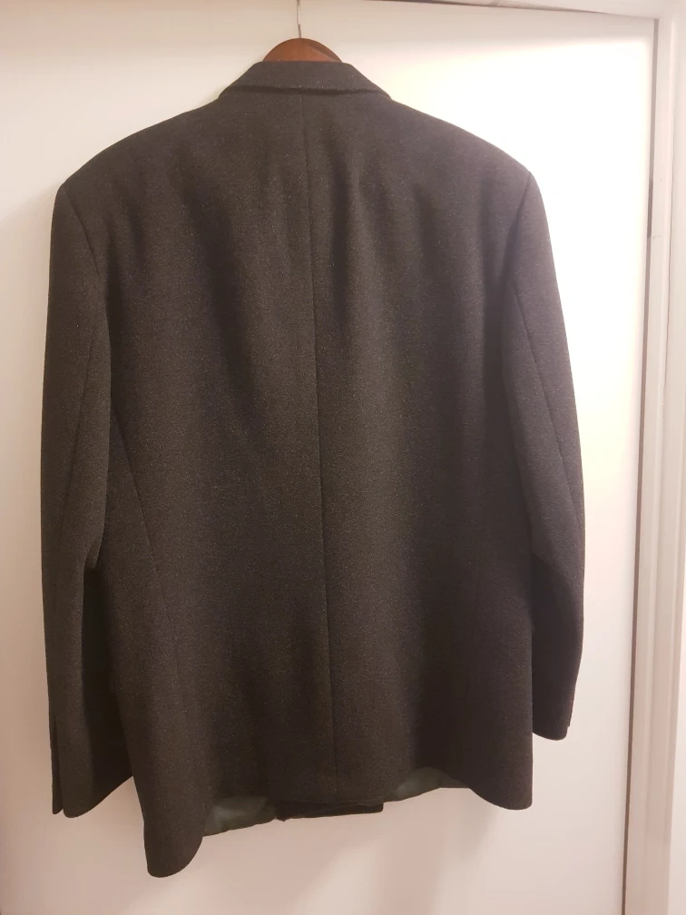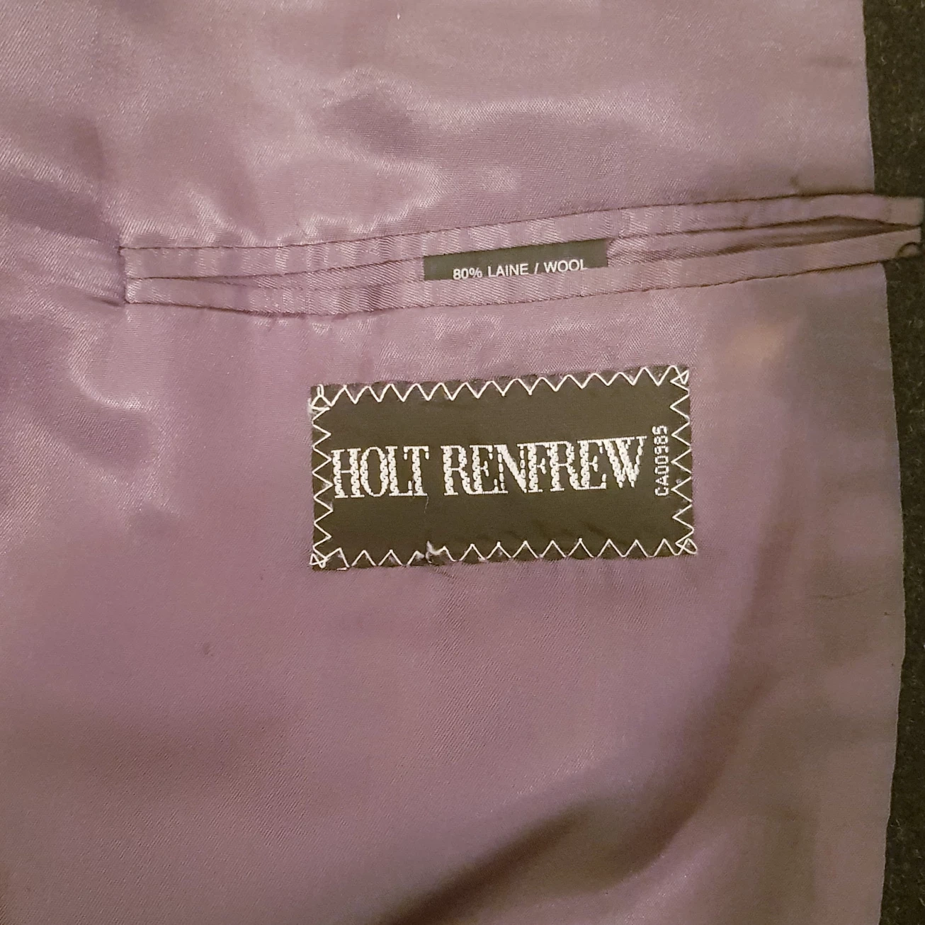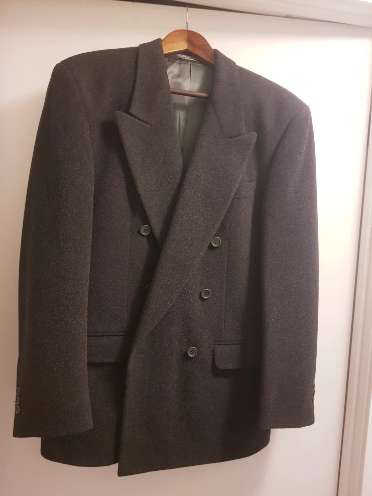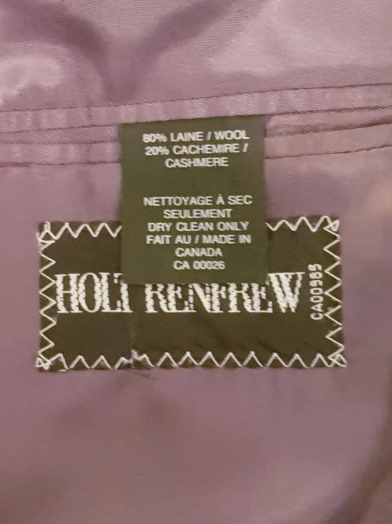 Made in Canada! Holt Renfrew double-breasted men's coat. I've only tried it on a few times but it's too big for me. The coat is around 77 cm long, 50 cm wide and sleeves are 60 cm. Non-smoking and pet-free home. Discounts for bundling with other items.